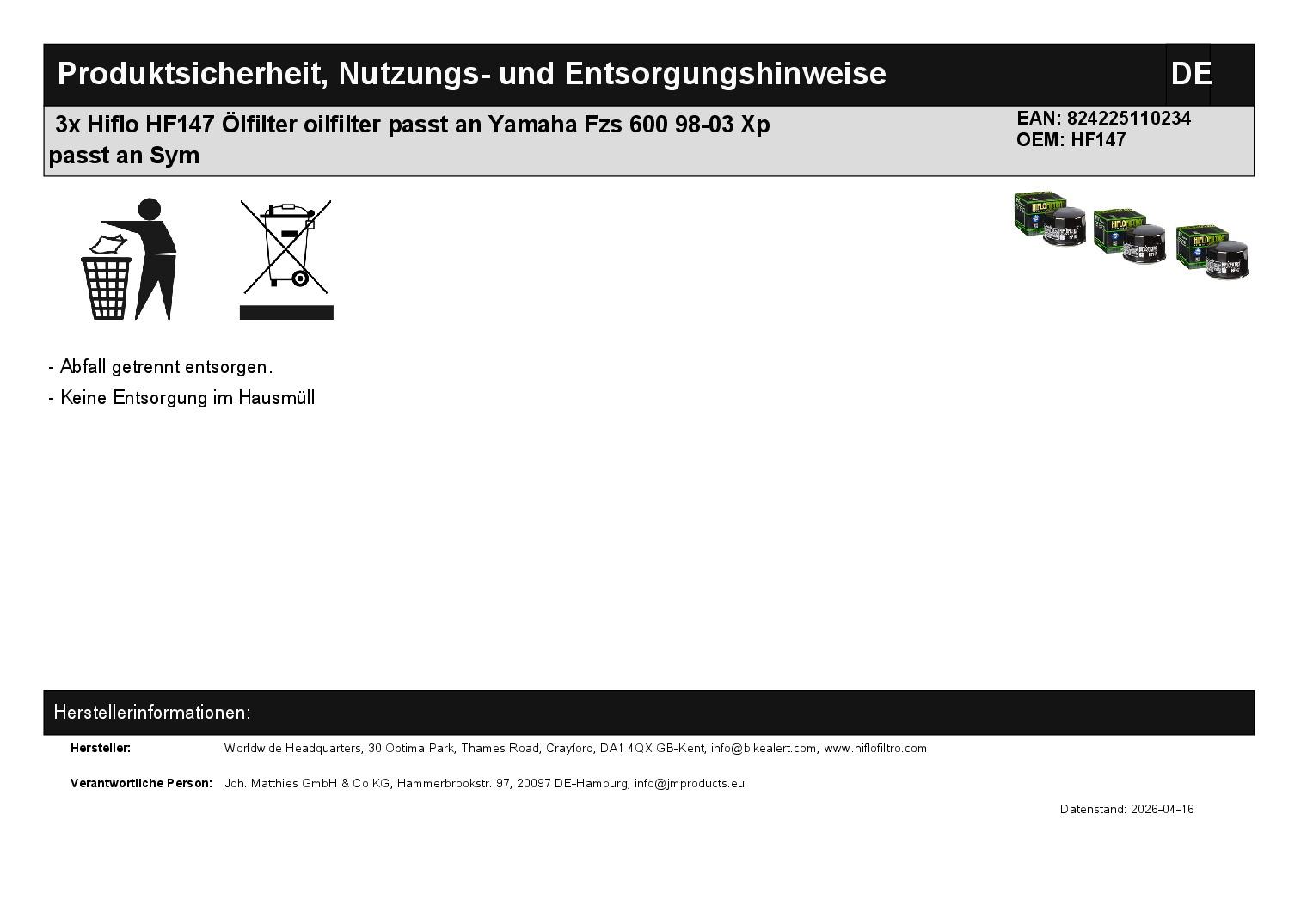 In dieser Auktion gibt es folgenden Artikel zu kaufen: Ölfilter (siehe Foto) Modell: passend für Yamaha FZS 600 Fazer Bj.: 1998 - 2003 XP 500 TMax Bj.: 2001 - 2011 XP 500 SV TMax Bj.: 2011 passend für Kymco MXU 500 Bj.: 2005 - 2014 MXU 550 Bj.: 2013 - 2022 passend für SYM Maxsym 500 Bj.: 2020 Maxsym 508 Bj.: 2021 - 2023 Lieferumfang: 3 Stück Artikelzustand: neu Es handelt sich hierbei um kein Originalteil! Bei Unklarheiten oder Fragen bitte erst E-Mail schreiben.