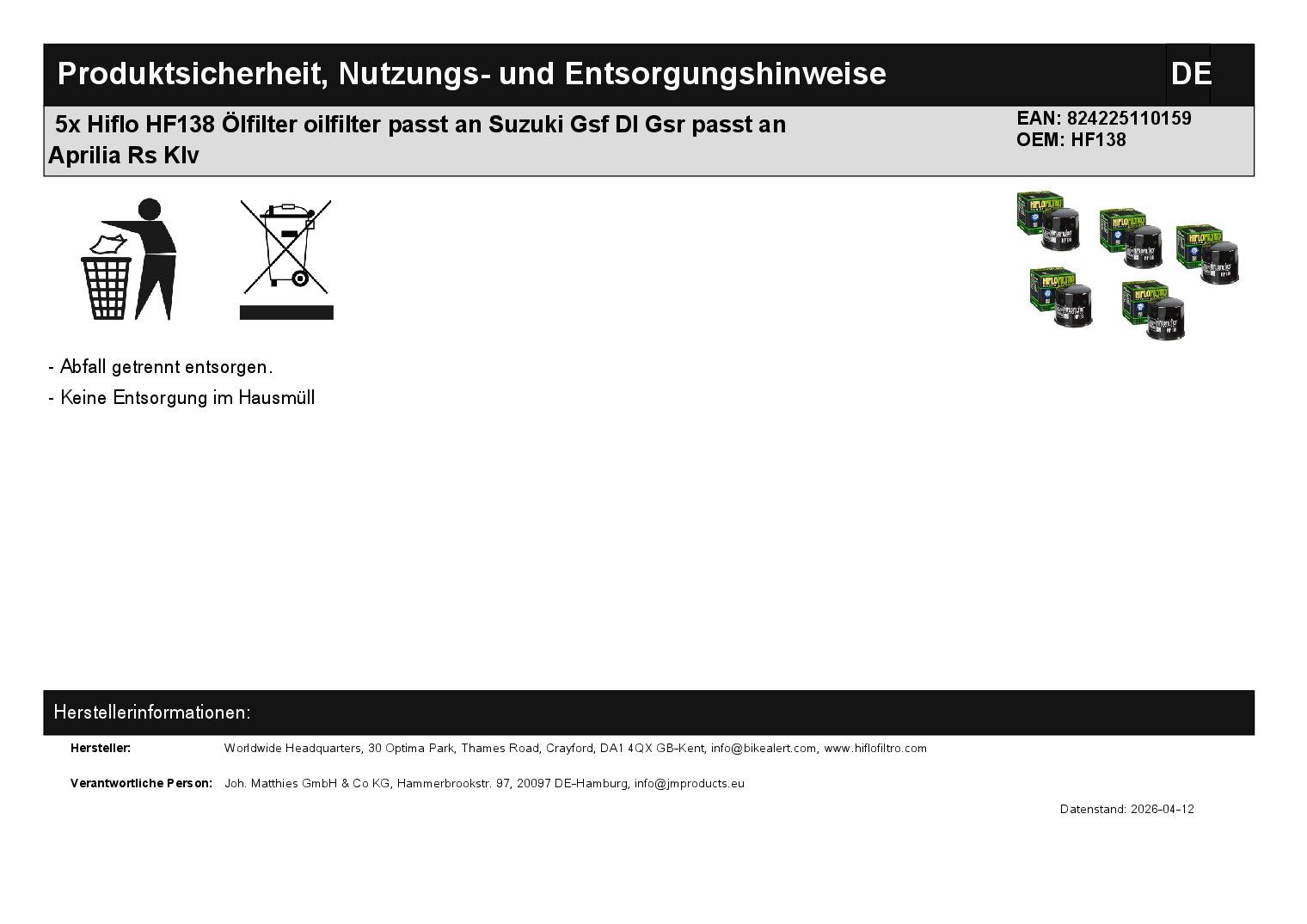 In dieser Auktion gibt es folgenden Artikel zu kaufen: Ölfilter aus dem Zubehör (siehe Foto) Modell: passend für Aprilia RSV 1000 RSV4 R Bj.: 09 - 17 Tuono 1000 Bj.: 11 - 17 passend für Cagiva Navigator 1000 Bj.: 00 - 05 Raptor 650 Bj.: 01 - 08 Raptor 1000 Bj.: 00 - 05 V-Raptor 650 Bj.: 01 - 05 V-Raptor 1000 Bj.: 00 - 05 X-Tra Raptor 1000 Bj.: 01 - 05 passend für Kawasaki KLV 1000 Bj.: 04 - 06 passend für Sachs B 805 Bj.: 02 - 03 Roadster 800 Bj.: 00 - 04 passend für Suzuki DL 650 Bj.: 04 - 17 DL 1000 Bj.: 02 - 16 GSF 600 Bandit Bj.: 95 - 04 GSF 650 Bj.: 06 - 14 GSF 1200 Bj.: 96 - 06 GSF 1250 Bj.: 07 - 16 GSR 600 Bj.: 06 - 11 GSR 750 Bj.: 11 - 15 GSX 600 Bj.: 88 - 01 GSX 650 Bj.: 08 - 14 GSX 750 Bj.: 89 - 06 GSX 1100 Bj.: 88 - 96 GSX 1200 Bj.: 99 - 00 GSX 1250 Bj.: 10 - 16 GSX 1300 Bj.: 99 - 16 GSX 1400 Bj.: 02 - 07 GSX-R 600 Bj.. 97 - 16 GSX-R 750 Bj.: 88 - 16 GSX-R 1000 Bj.: 01 - 17 GSX-R 1100 Bj.: 86 - 97 GSX-S 750 Bj.: 2017 GSX-S 1000 Bj.: 15 - 16 GW 250 Bj.: 13 - 17 RF 600 Bj.: 96 - 96 RF 900 Bj.: 94 - 97 SFV 650 Bj.: 09 - 15 SV 650 Bj.: 99 - 16 SV 1000 Bj.: 97 - 05 VL 800 Bj.: 01 - 16 VL 1500 Bj.: 98 - 14 VLR 1800 Bj.: 08 - 13 VS 600 Bj.: 95 - 97 VS 750 Bj.: 87 - 91 VS 800 Bj.: 92 - 00 VS 1400 Bj.: 87 - 03 VX 800 Bj.: 90 - 97 VZ 800 Bj.: 97 - 15 VZ 1500 Bj.: 09 - 11 VZR 1800 Bj.: 06 - 17 Lieferumfang: 5 Stück Artikelzustand: neu Bei Unklarheiten oder Fragen bitte erst E-Mail schreiben.