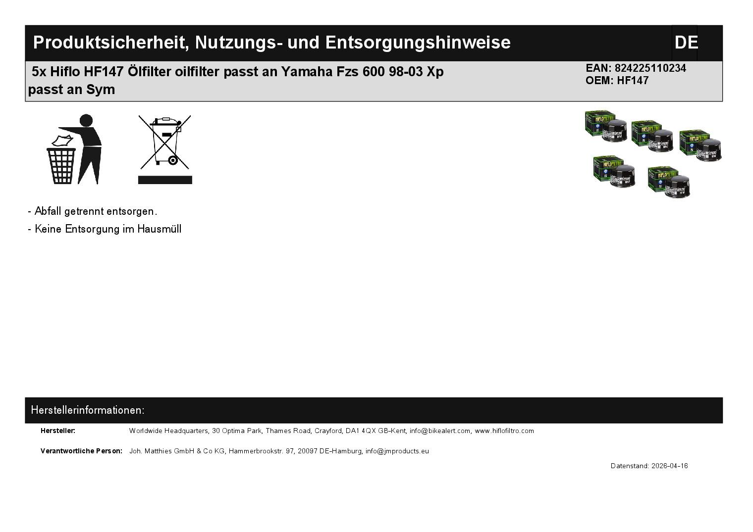 In dieser Auktion gibt es folgenden Artikel zu kaufen: Ölfilter (siehe Foto) Modell: passend für Yamaha FZS 600 Fazer Bj.: 1998 - 2003 XP 500 TMax Bj.: 2001 - 2011 XP 500 SV TMax Bj.: 2011 passend für Kymco MXU 500 Bj.: 2005 - 2014 MXU 550 Bj.: 2013 - 2022 passend für SYM Maxsym 500 Bj.: 2020 Maxsym 508 Bj.: 2021 - 2023 Lieferumfang: 5 Stück Artikelzustand: neu Es handelt sich hierbei um kein Originalteil! Bei Unklarheiten oder Fragen bitte erst E-Mail schreiben.