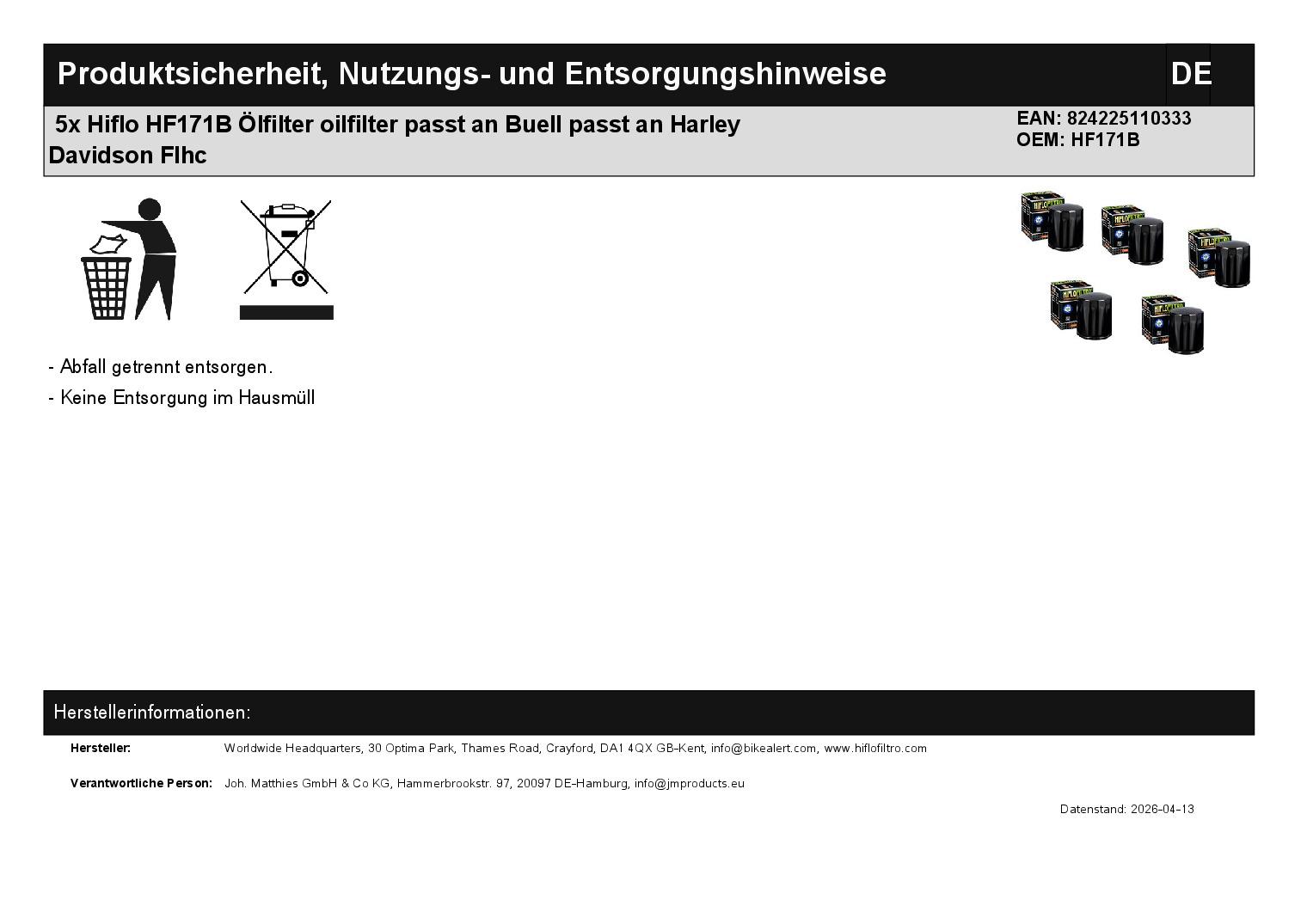 In dieser Auktion gibt es folgenden Artikel zu kaufen: Ölfilter (siehe Foto) Modell: passend für Buell 1200 Bj.: 1994 - 2002 passend für Harley Davidson FLD Switchback Bj.: 2012 - 2016 FLDE Deluxe Bj.: 2018 - 2020 FLFB Fat Boy Bj.: 2018 - 2020 FLBS Fat Boy 114 Bj.: 2018 - 2020 FLH Heritage Classic Bj.: 2018 - 2021 FLHT Electra Glide Bj.: 2000 - 2001 FLHT Electra Glide Standard Bj.: 2002 - 2022 Lieferumfang: 5 Stück Artikelzustand: neu Bei Unklarheiten oder Fragen bitte erst E-Mail schreiben.