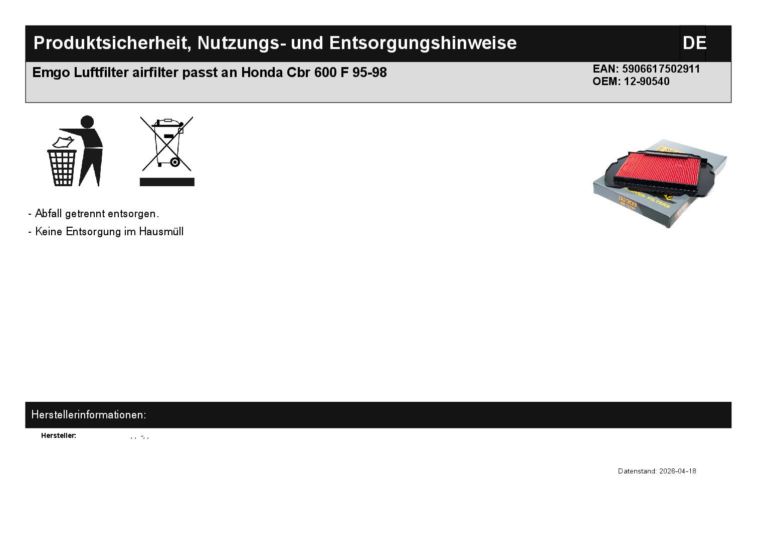 In dieser Auktion gibt es folgenden Artikel zu kaufen: Luftfilter (ähnlich Foto) Modell: passend für Honda CBR 600 F Bj.: 95 - 98 Lieferumfang: 1 Stück Artikelzustand: neu Bei Unklarheiten oder Fragen bitte erst E-Mail schreiben.