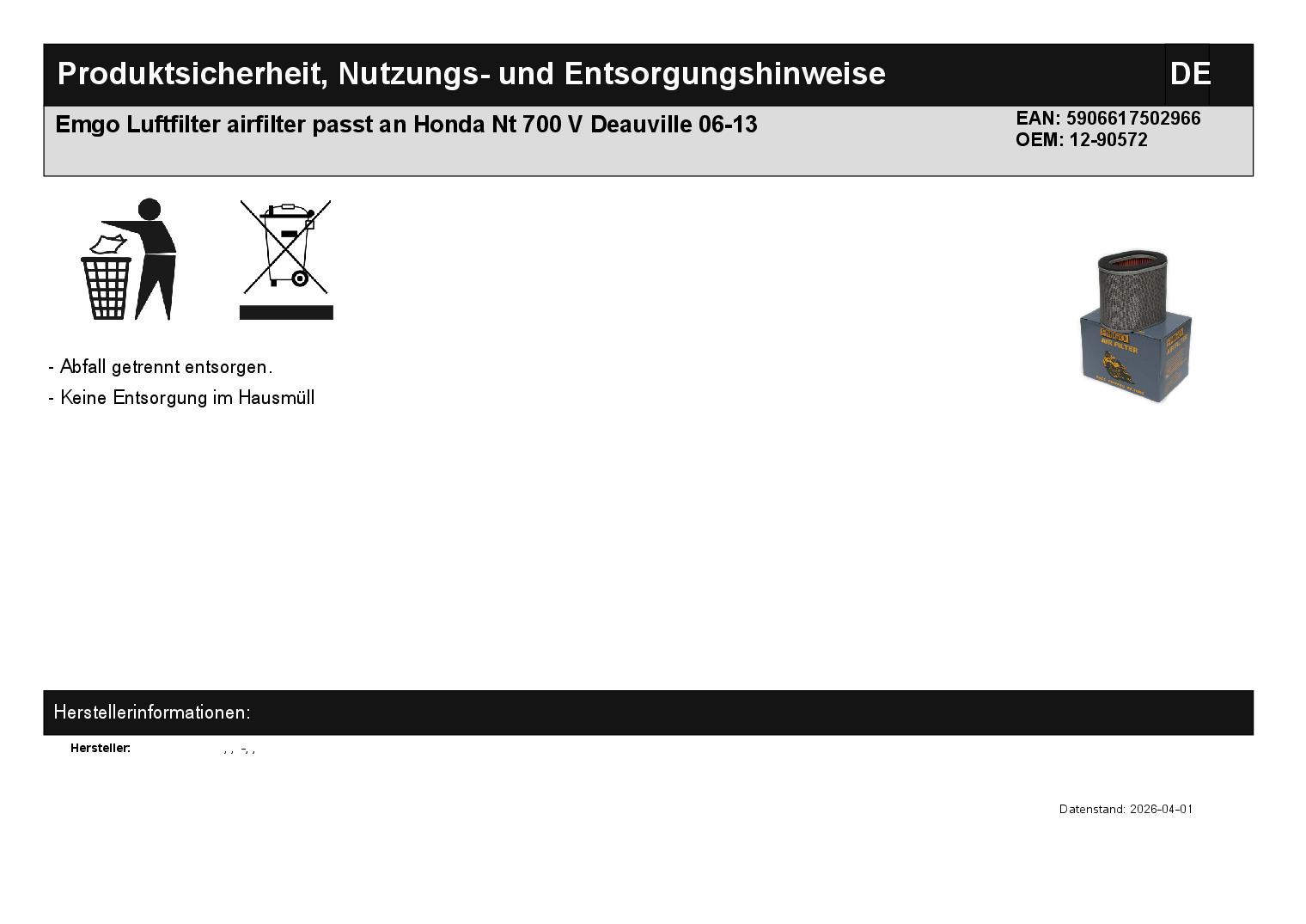In dieser Auktion gibt es folgenden Artikel zu kaufen: Luftfilter (ähnlich Foto) Modell: passend für Honda NT 700 V Deauville Bj.: 06 - 13 Lieferumfang: 1 Stück Artikelzustand: neu Bei Unklarheiten oder Fragen bitte erst E-Mail schreiben.