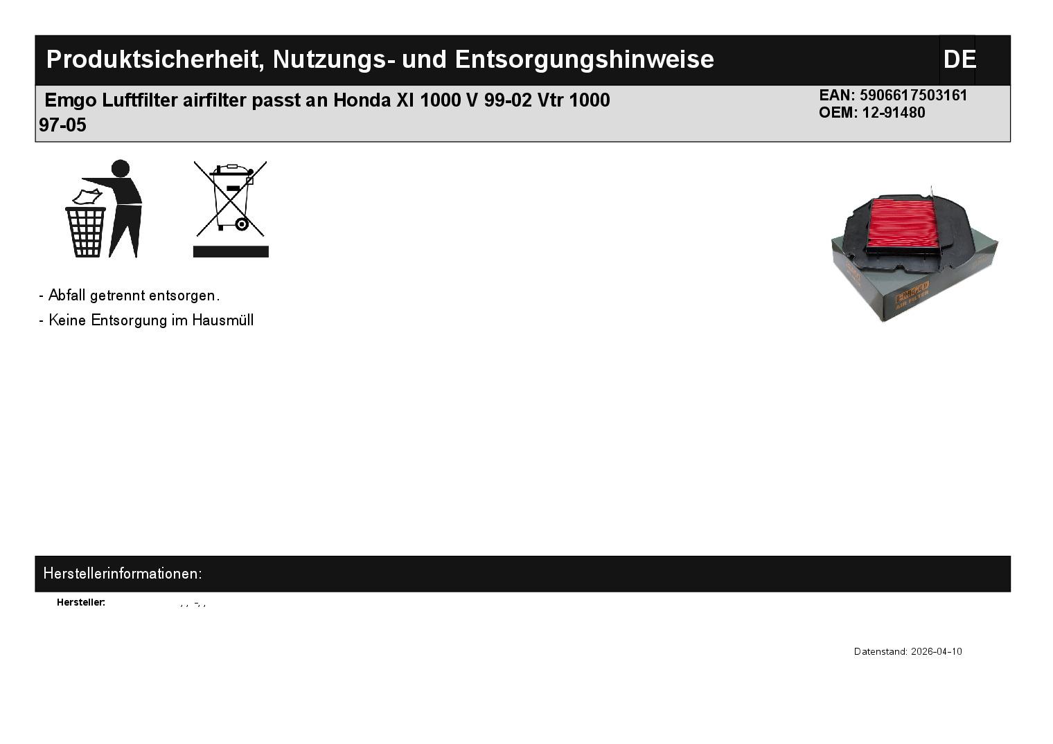 In dieser Auktion gibt es folgenden Artikel zu kaufen: Luftfilter (ähnlich Foto) Modell: passend für Honda XL 1000 V Bj.: 99 - 02 VTR 1000 Bj.: 97 - 05 Lieferumfang: 1 Stück Artikelzustand: neu Hierbei handelt es sich um kein Originalteil! Bei Unklarheiten oder Fragen bitte erst E-Mail schreiben.