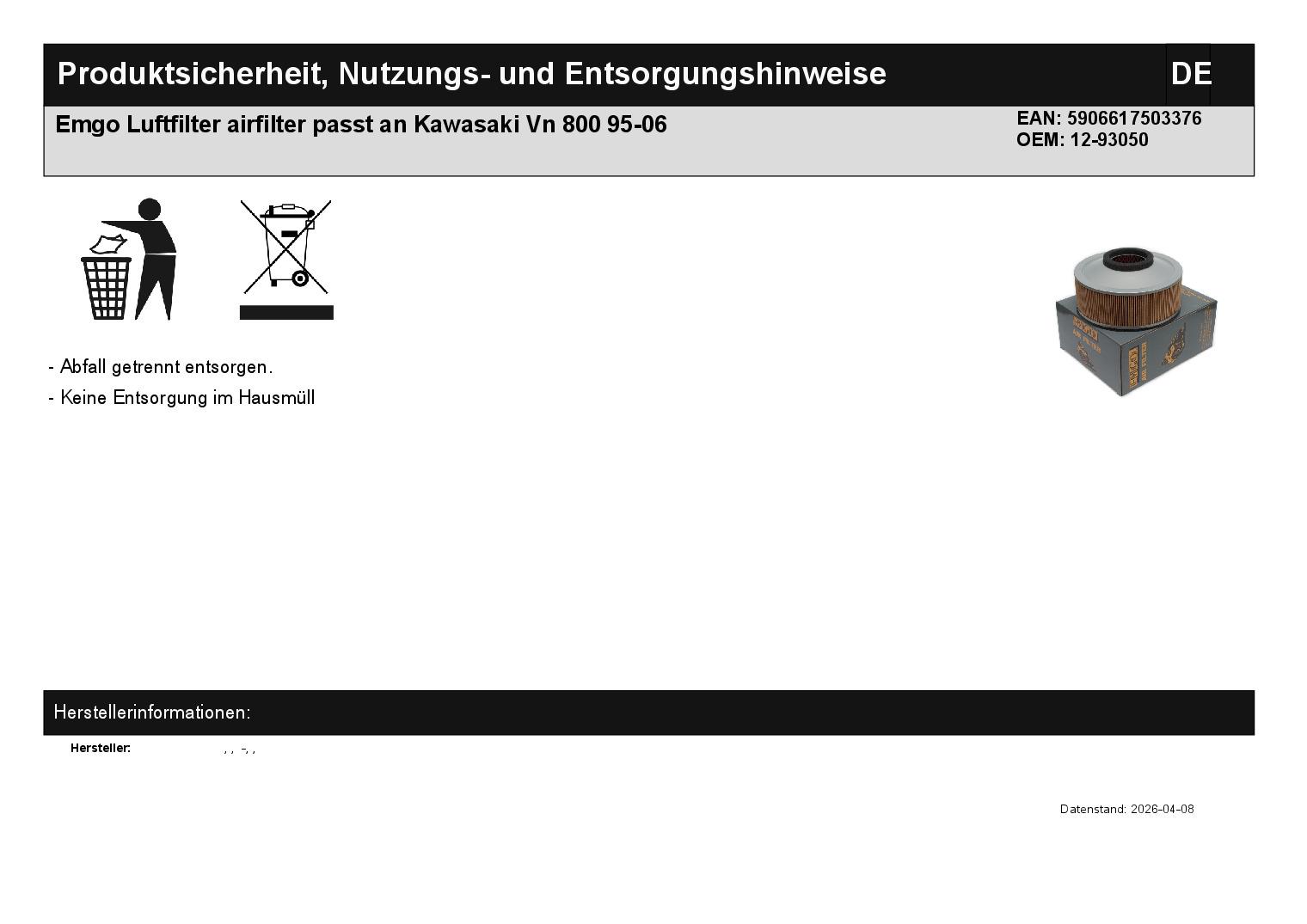 In dieser Auktion gibt es folgenden Artikel zu kaufen: Luftfilter (ähnlich Foto) Modell: passend für Kawasaki VN 800 Bj.: 1995 - 2006 Lieferumfang: 1 Stück Artikelzustand: neu Hierbei handelt es sich um kein Originalteil! Bei Unklarheiten oder Fragen bitte erst E-Mail schreiben.