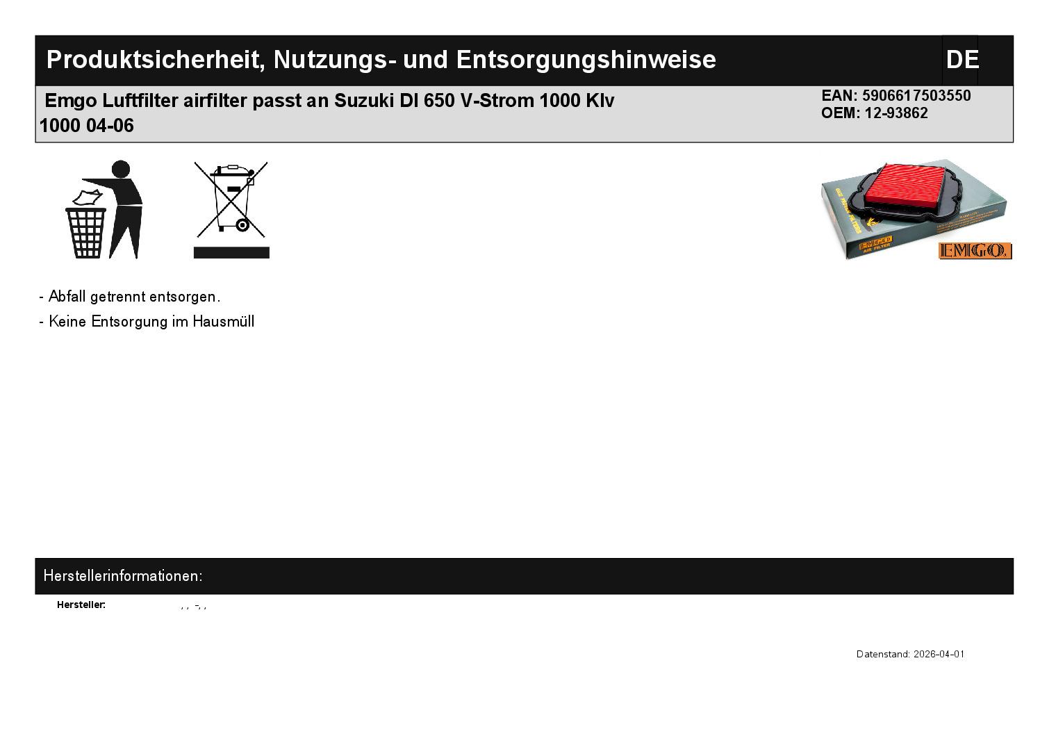 In dieser Auktion gibt es folgenden Artikel zu kaufen: Luftfilter (ähnlich Foto) Modell: passend für Suzuki DL 650 V-Strom Bj.: 04 - 18 DL 1000 V-Strom Bj.: 02 - 10 passend für Kawasaki KLV 1000 Bj.: 04 - 06 Lieferumfang: 1 Stück Artikelzustand: neu Hierbei handelt es sich um kein Originalteil! Bei Unklarheiten oder Fragen bitte erst E-Mail schreiben.