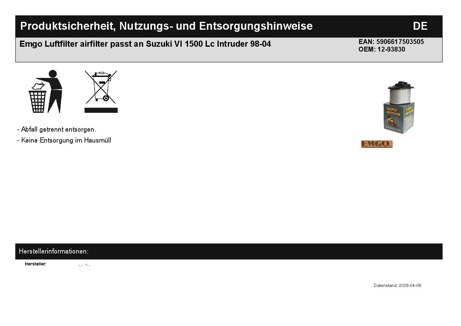 Titel: Emgo Luftfilter airfilter passt an Suzuki Vl 1500 Lc Intruder 98-04
