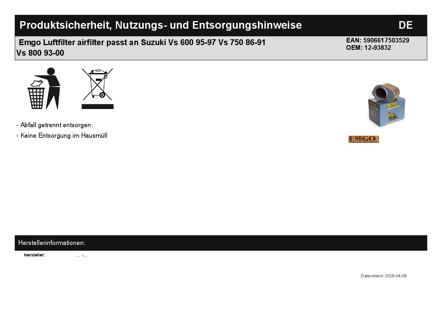 In dieser Auktion gibt es folgenden Artikel zu kaufen: Luftfilter (ähnlich Foto) Modell: passend für Suzuki VS 600 Bj.: 1995 - 1997 VS 750 Bj.: 1986 - 1991 VS 800 Bj.: 1993 - 2000 Lieferumfang: 1 Stück Artikelzustand: neu Hierbei handelt es sich um kein Originalteil! Bei Unklarheiten oder Fragen bitte erst E-Mail schreiben.