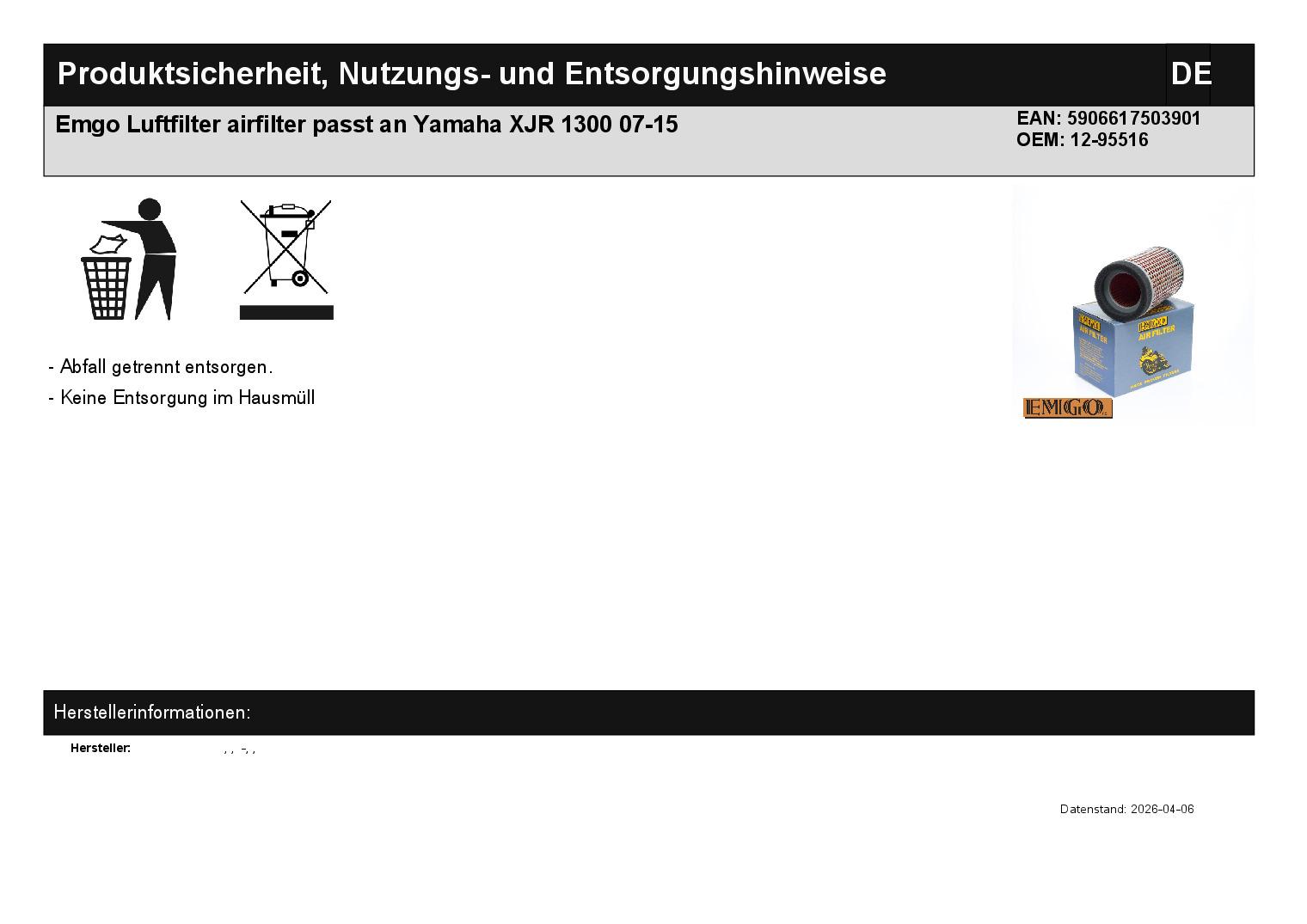 In dieser Auktion gibt es folgenden Artikel zu kaufen: Luftfilter (ähnlich Foto) Modell: passend für Yamaha XJR 1300 Bj.: 2007 - 2015 Lieferumfang: 1 Stück Artikelzustand: neu Hierbei handelt es sich um kein Originalteil! Bei Unklarheiten oder Fragen bitte erst E-Mail schreiben.