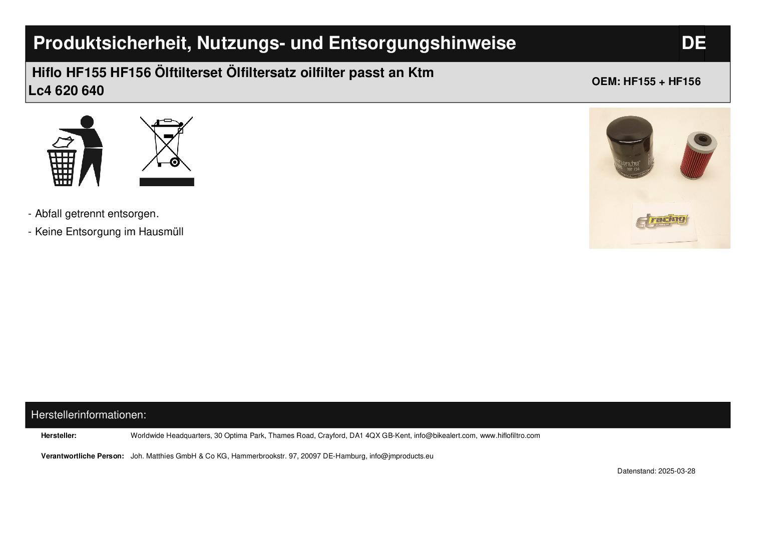 Titel: Hiflo HF155 HF156 Ölftilterset Ölfiltersatz oilfilter passt an Ktm Lc4 620 640