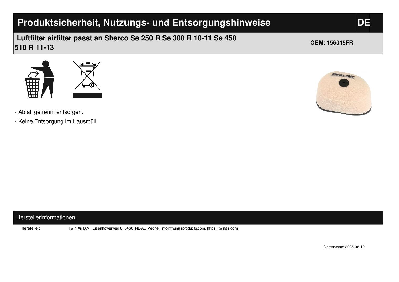 In dieser Auktion gibt es folgenden Artikel zu kaufen: Luftfilter (ähnlich Foto) Modell: passend für Sherco SE 250 R (F) Bj.: 09 - 11 SE 300 R (F) Bj.: 10 - 11 SE 450 R (F) Bj.: 11 - 13 SE 510 R (F) Bj.: 11 - 13 Lieferumfang: 1 Stück Artikelzustand: neu Hierbei handelt es sich um kein Originalteil Bei Unklarheiten oder Fragen bitte erst E-Mail schreiben.