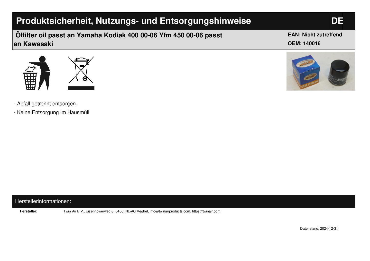 In dieser Auktion gibt es folgenden Artikel zu kaufen: Ölfilter (siehe Foto) Modell: passend für Kawasaki Prairie 300 Bj.: 93 - 03 Prairie 400 Bj.: 97 - 04 Bayou 400 Bj.: 00 - 01 passend für Polaris Magnum 330 Bj.: 03 - 05 Magnum 425 Bj.: 96 - 98 Magnum 500 Bj.: 99 - 02 Sportsman 400 Bj.: 06 - 07 passend für Yamaha YFM 350 Bj.: 04 - 06 YFM 450 Bj.: 00 - 06 Rhino 450 Bj.: 06 - 09 Rhino 660 Bj.: 05 - 07 Kodiak 400 Bj.: 00 - 06 Lieferumfang: siehe Foto Artikelbeschreibung: neu Bei Unklarheiten oder Fragen bitte erst E-Mail schreiben.