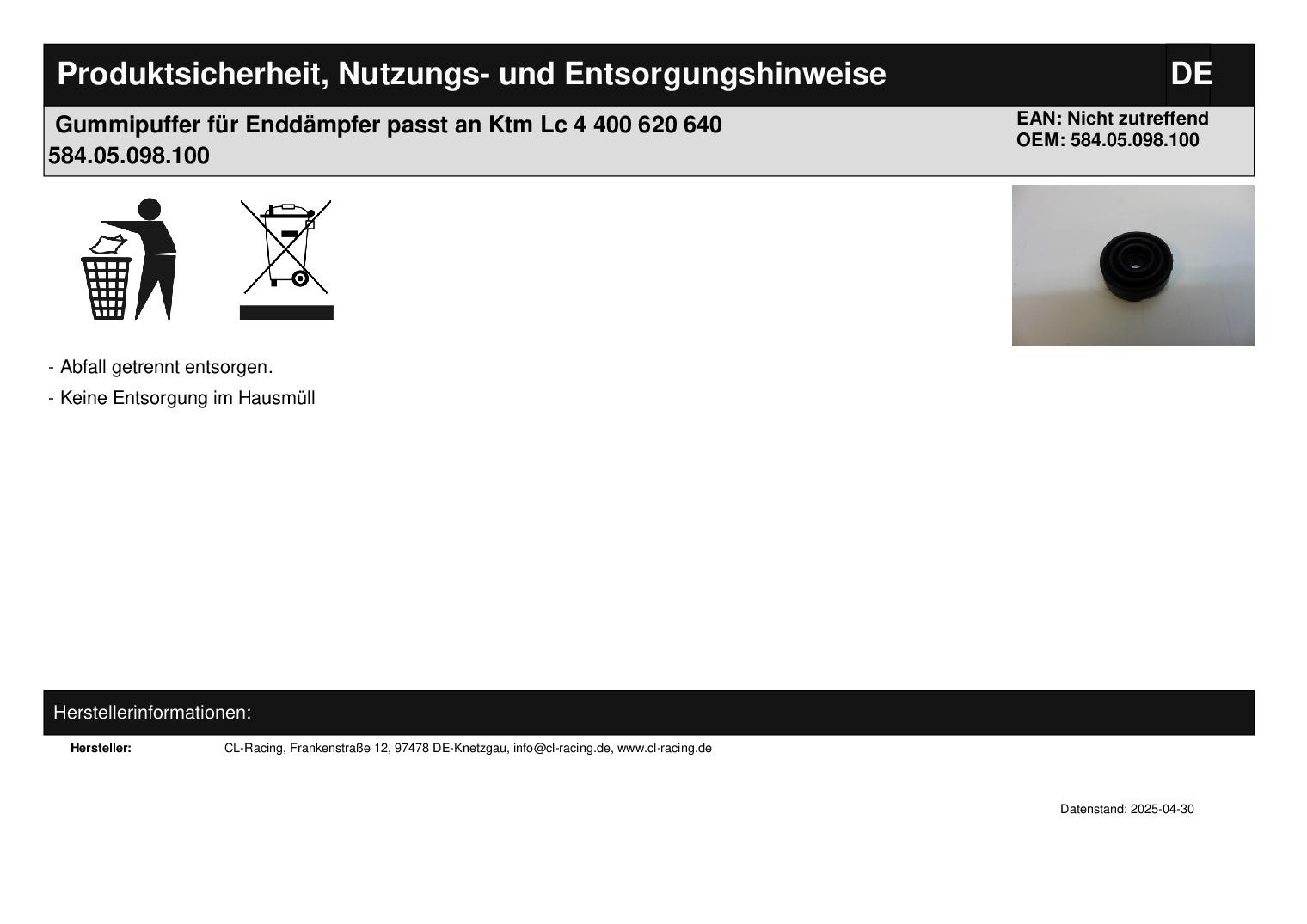 In dieser Auktion gibt es folgenden Artikel zu kaufen: Gummipuffer (siehe Foto) Modell: passend für Ktm LC 4 400 Bj.: 00 - 02 LC 4 620 Bj.: 00 - 02 LC 4 640 Bj.: 00 - 07 Lieferumfang: siehe Foto Artikelzustand: neu aus Geschäftsauflösung, mit minimalen Lagerspuren; Zustand siehe Foto Es handelt sich hierbei um kein Originalteil Bei Unklarheiten oder Fragen bitte erst E-Mail schreiben.