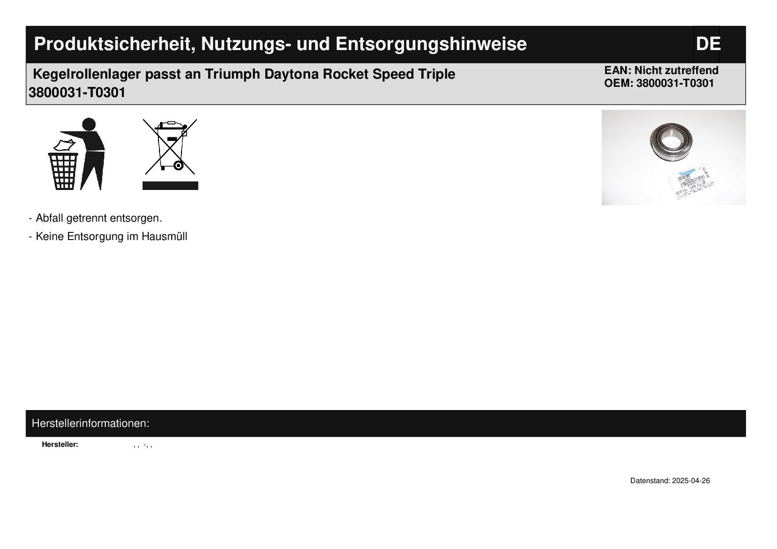 In dieser Auktion gibt es folgenden Artikel zu kaufen: Kegelrollenlager (siehe Foto) Modell: passend für Triumph Adventurer Bj.:1996 - 2001 Daytona 1000 Bj.: 1992 - 1993 Daytona 1200 Bj.: 1993 - 2006 Daytona 595 Bj.: 1997 - 2006 Daytona 750 Bj.: 1992 - 1993 Daytona 900 Bj.: 1993 - 2006 Daytona 955i Bj.: 1997 - 2006 Daytona Super III Bj.: 1993 - 2006 Legend TT Bj.: 1998 - 2001 Rocket III Classic/Roadster Bj.: 2005 - 2013 Rocket III Touring Bj.: 2006 - 2013 Speed Triple Bj.: 1994 - 2013 Speed Triple 1050 Bj.: 1994 - 2013 Speed Triple 885 Bj.: 1994 - 1996 Sprint CARBS Bj.: 1993 - 1998 Sprint RS Bj.: 1999 - 2004 Sprint ST Bj.: 1999 - 2013 Thunderbird 885 Bj.: 1995 - 2013 Thunderbird SPORT Bj.: 1998 - 2003 Tiger 885 Bj.: 1993 - 1998 Tiger 885i Bj.: 1993 - 1998 Tiger 955i Bj.: 2001 - 2007 TRIDENT Bj.: 1991 - 1998 Trophy 900 Bj.: 1991 - 2004 Lieferumfang: 1 Stück