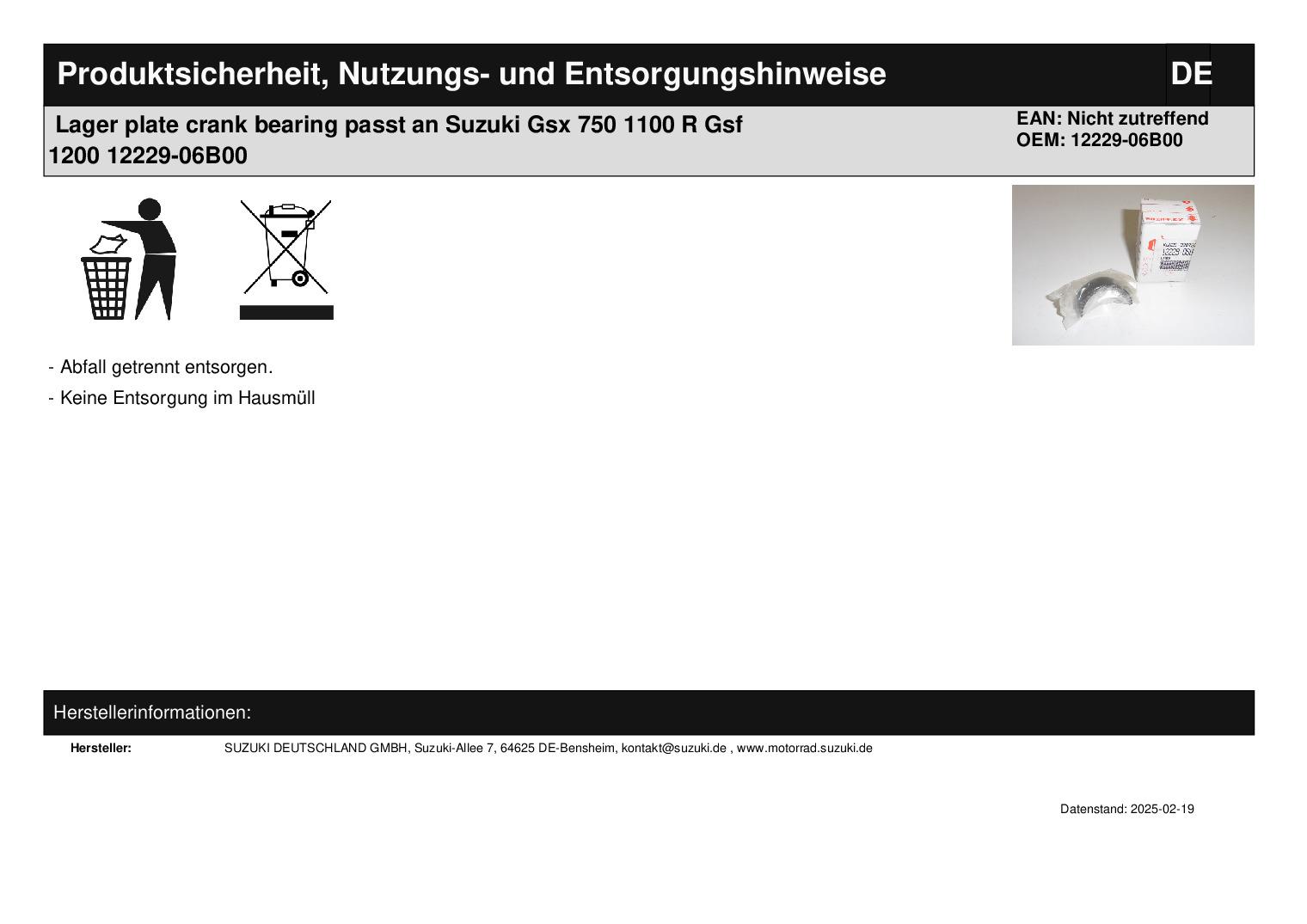 In dieser Auktion gibt es folgenden Artikel zu kaufen: Lager (siehe Foto) Modell: passend für Suzuki GSX 750 Bj.: 89 - 97 GSX 1100 Bj.: 88 - 93 GSX-R 750 Bj.: 88 - 90 GSX-R 1100 Bj.: 86 - 92 GSF 1200 Bj.: 97 - 05 Lieferumfang: siehe Foto Artikelzustand: neu aus Geschäftsauflösung, mit leichten Lagerspuren; Zustand siehe Foto Bei Unklarheiten oder Fragen bitte erst E-Mail schreiben.