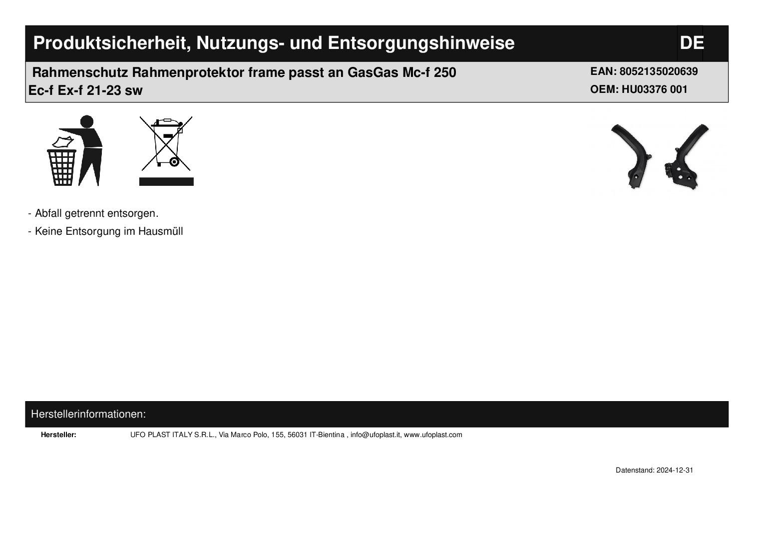 Rahmenschutz (ähnlich Foto) Fahrzeug: passend für GasGas MC 125 Bj.: 2021 - 2023 MC 250 Bj.: 2022 - 2023 MC-F 250 Bj.: 2021 - 2023 EC 250 Bj.: 2021 - 2023 EX 250 Bj.: 2022 - 2023 EC-F 250 Bj.: 2021 - 2023 EX-F 250 Bj.: 2021 - 2023 EC 300 Bj.: 2021 - 2023 EX 300 Bj.: 2021 - 2023 MC-F 350 Bj.: 2022 - 2023 EC-F 350 Bj.: 2021 - 2023 EX-F 350 Bj.: 2021 - 2023 MC-F 450 Bj.: 2021 - 2023 EX-F 450 Bj.: 2021 - 2023 passend für Husqvarna TC 125, 300 Bj.: 2016 - 2018 TC 250 Bj.: 2017 - 2018 TE 125, 250, 300 Bj.: 2017 - 2019 TX 125, 250, 300 Bj.: 2017 - 2019 FC 250, 350, 450 Bj.: 2016 - 2018 FE 250, 350, 450, 501 Bj.: 2017 - 2019 Lieferumfang: siehe Foto Artikelzustand: neu Es handelt sich hierbei um kein Originalteil! Bei Unklarheiten oder Fragen bitte erst E-Mail schreiben.