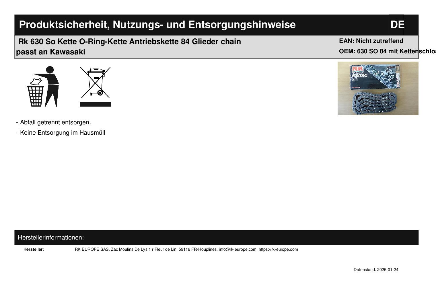 In dieser Auktion gibt es folgenden Artikel zu kaufen: O-Ring-Kette -mit Kettenschloss- (ähnlich Foto, jedoch mit Kettenschloss) Typ: 630 SO Bitte Kettentyp vergleichen! Gliederzahl: 84 Lieferumfang: Kette, offen mit Kettenschloss Artikelzustand: neu aus Geschäftsauflösung, mit leichten Lagerspuren; Verpackung kann beschädigt sein; Zustand ähnlich Foto