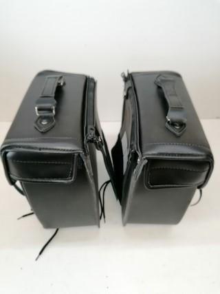 In dieser Auktion gibt es folgenden Artikel zu kaufen: Satteltaschenpaar (siehe Foto) Modell: universal Details: - aus pflegeleichtem, widerstandsfähigem und wetterfestem Kunstleder - großes Hauptfach mit zusätzlicher Einschubtasche im Inneren - die Deckelklappe wird durch unter den Schnallen versteckte Klickverschlüsse geöffnet - vorne und hinten wird der Deckel durch Klett an der Tasche flatterfrei gehalten - robuste Tragegriffe - die Befestigung erfolgt universell über das per Klett breitenverstellbare Verbindungsstück (über oder unter die Sitzbank) - von dieser Querverbindung können die Taschen über Reißverschlüsse in Sekundenschnelle abgenommen oder auch wieder befestigt werden Maße ca.: außen: 30 x 15 x 29 cm innen: 26 x 12,5 x 27 cm Stauraum pro Tasche: 10 Liter Einschubtasche innen: 20 x 16,5 cm minimal/maximal der Querverbindung: 17,5 x 33 - 50 cm Breite Riemen Verschluss: 2,8 cm Tragegriff: 11 x 2,5 cm Gewicht: 1960 g Lieferumfang: siehe Foto Artikelzustand: neu aus Geschäftsauflösung; eine Naht ist ca. 5 cm unsauber verarbeitet; zweimal der gleiche Klettverschluss an beiden Taschen, somit keine Befestigung möglich; sonstige leichte Lagerspuren vorhanden; Taschen werden ausdrücklich als defekt verkauft!!! Zustand siehe Foto Bei Unklarheiten oder Fragen bitte erst E-Mail schreiben.