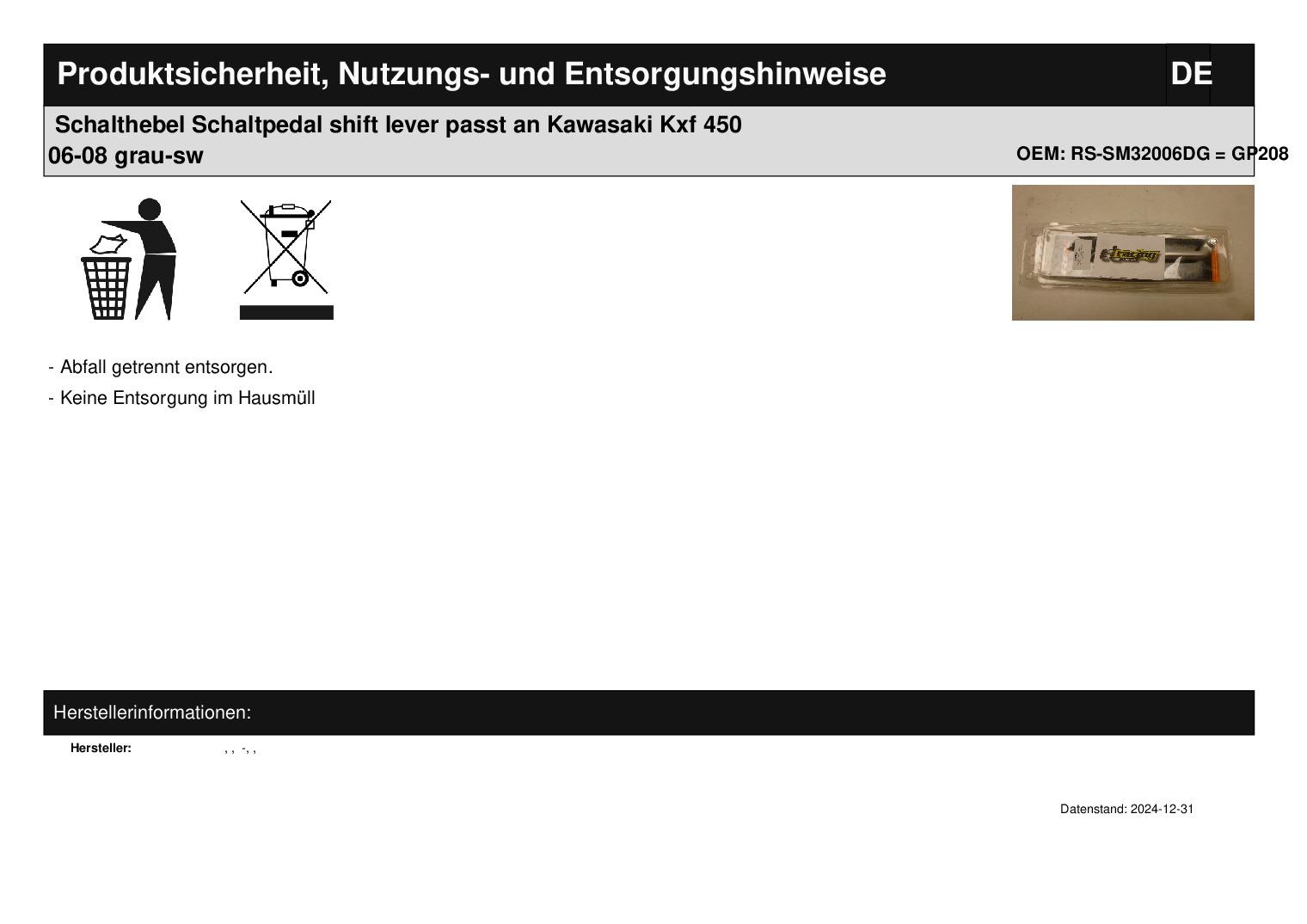 In dieser Auktion gibt es folgenden Artikel zu kaufen: Schalthebel (siehe Foto) Modell: passend für Kawasaki Kxf 450 Bj.: 2006 - 2008 Lieferumfang: siehe Foto Artikelzustand: neu Hierbei handelt es sich um kein Originalteil! Bei Unklarheiten oder Fragen bitte erst E-Mail schreiben.
