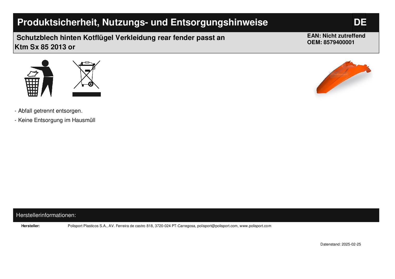 In dieser Auktion gibt es folgenden Artikel zu kaufen: Schutzblech hinten (siehe Foto) Fahrzeug: passend für Ktm SX 85 Bj.: 2013 Lieferumfang: siehe Foto Artikelzustand: neu aus Geschäftsauflösung, mit leichten Lagerspuren; Zustand siehe Foto