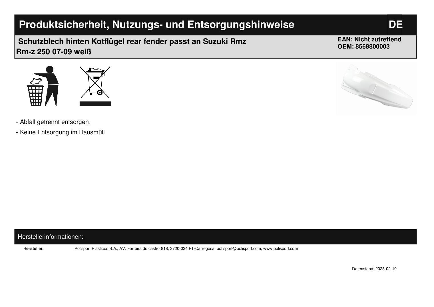 In dieser Auktion gibt es folgenden Artikel zu kaufen: Schutzblech hinten (siehe Foto) Fahrzeug: passend für Suzuki RM-Z 250 Bj.: 07 - 09 Lieferumfang: siehe Foto Artikelzustand: neu aus Geschäftsauflösung, mit leichten Lagerspuren, Zustand siehe Foto Bei Unklarheiten oder Fragen bitte erst E-Mail schreiben.