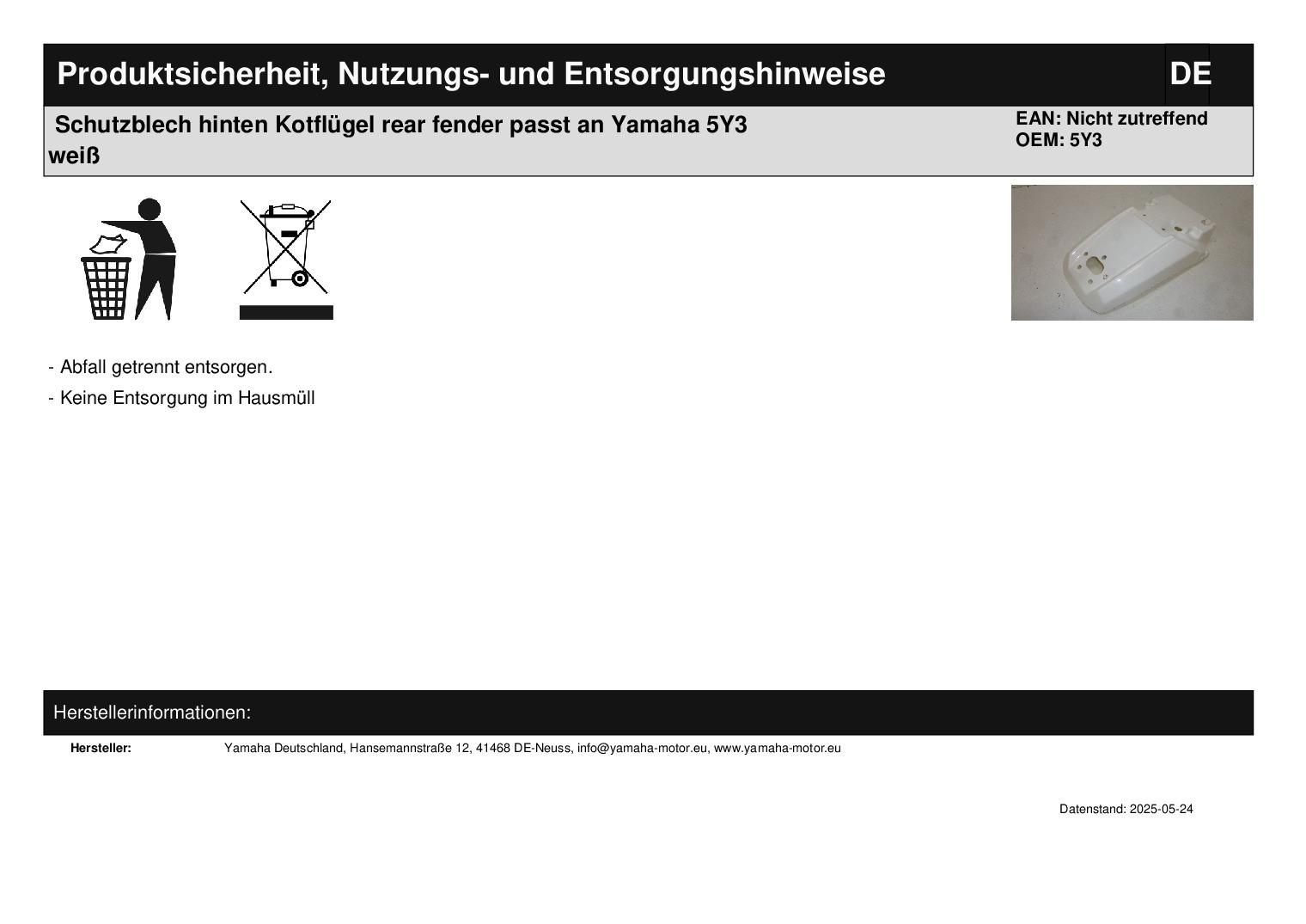 In dieser Auktion gibt es folgenden Artikel zu kaufen: Schutzblech (siehe Foto) Modell: passt an Yamaha Bj.: unbekannt Abmaße: Länge gesamt: ca. 34 cm Breite gesamt: ca. 22 cm Lieferumfang: siehe Foto Artikelzustand: neu aus Geschäftsauflösung, mit leichten Lagerspuren; Zustand siehe Foto Bei Unklarheiten oder Fragen bitte erst E-Mail schreiben.