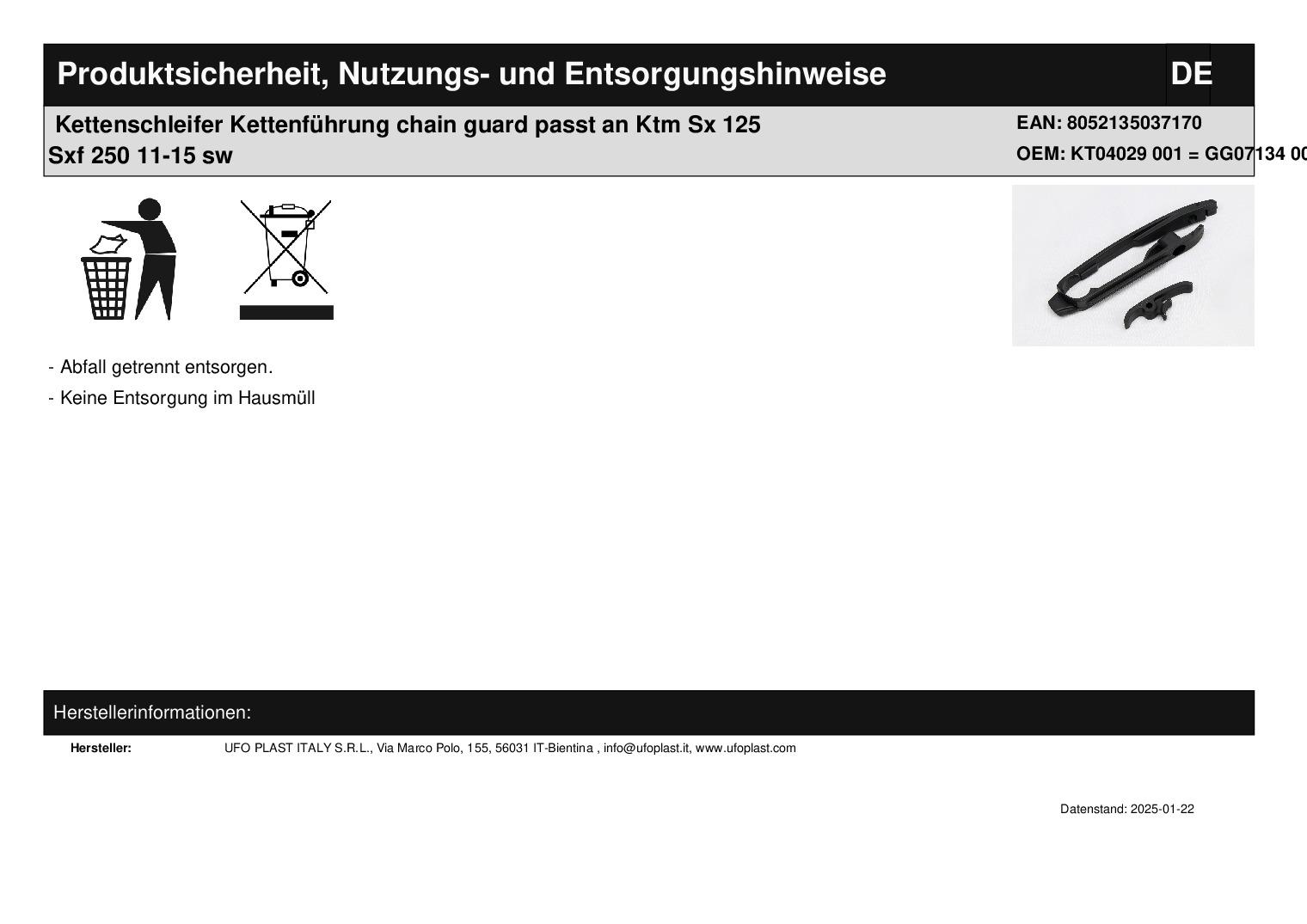 Titel: Kettenschleifer Kettenführung chain guard passt an Ktm Sx 125 Sxf 250 11-15 sw