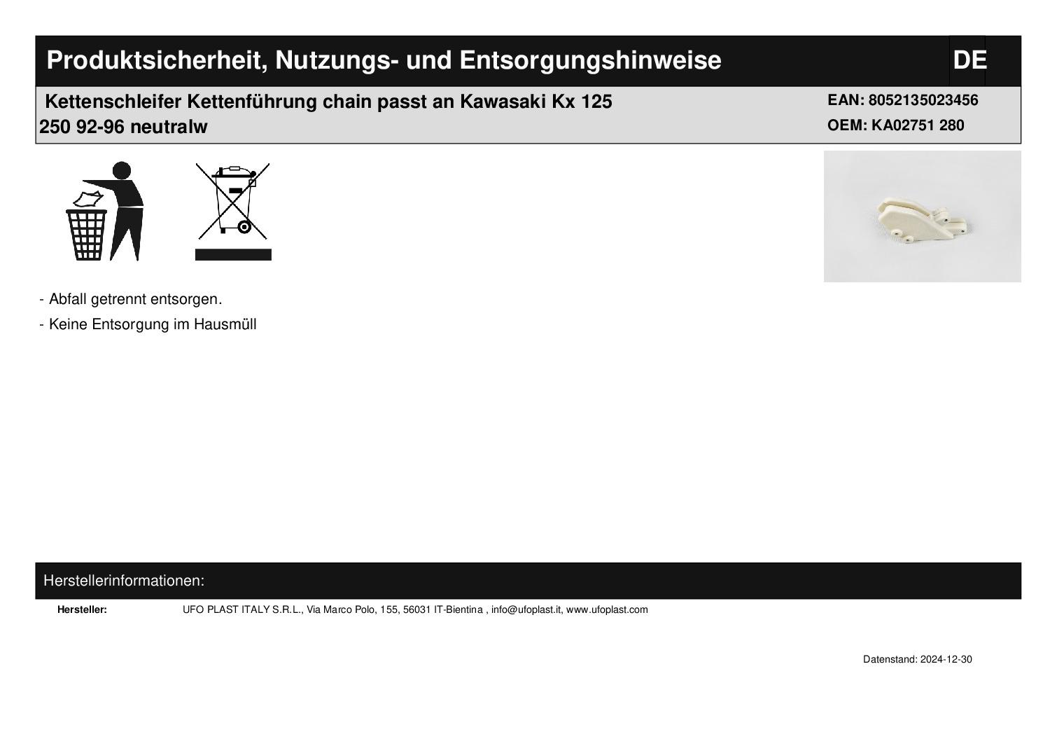 In dieser Auktion gibt es folgenden Artikel zu kaufen: beschädigter Kettenschleifer - 2. Wahl, (siehe Foto) Fahrzeug: passend für Kawasaki KX 125, 250 Bj.: 92 - 96 Lieferumfang: 1 Stück Artikelzustand: neu allerdings mit Fehlern; Riss am Befestigungspunkt siehe Foto! Bei Unklarheiten oder Fragen bitte erst E-Mail schreiben.