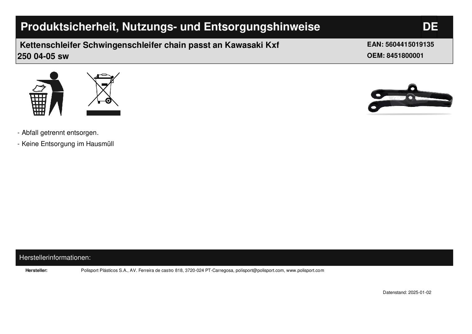 In dieser Auktion gibt es folgenden Artikel zu kaufen: Kettenschleifer (ähnlich Foto) Fahrzeug: passend für Suzuki RMZ 250 Bj.: 04 - 06 (4-Takt) passend für Kawasaki Kxf 250 04 - 05 (4-Takt) Lieferumfang: 1 Stück Artikelzustand: neu Bei Unklarheiten oder Fragen bitte erst E-Mail schreiben.