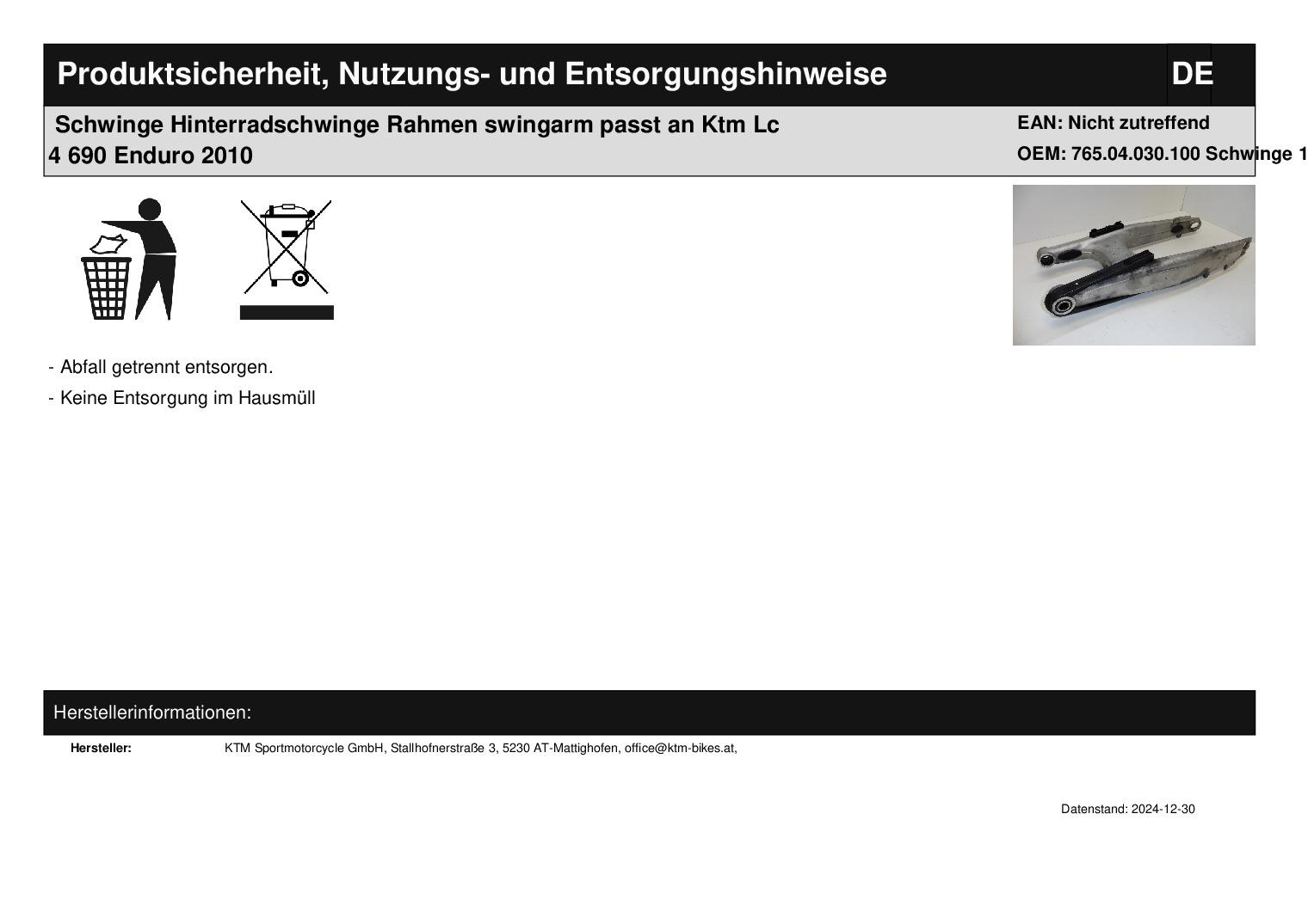 originale Schwinge (siehe Foto) Fahrzeug: passend für Ktm Lc4 690 Enduro (4-Takt) Bj.: 2010 (passt evtl. auch für andere Modelle, bitte erst nachfragen!) Lieferumfang: siehe Foto Artikelzustand: normale Gebrauchsspuren wie leichte Kratzer vorhanden; Zustand siehe Foto Bei Unklarheiten oder Fragen bitte erst E-Mail schreiben.
