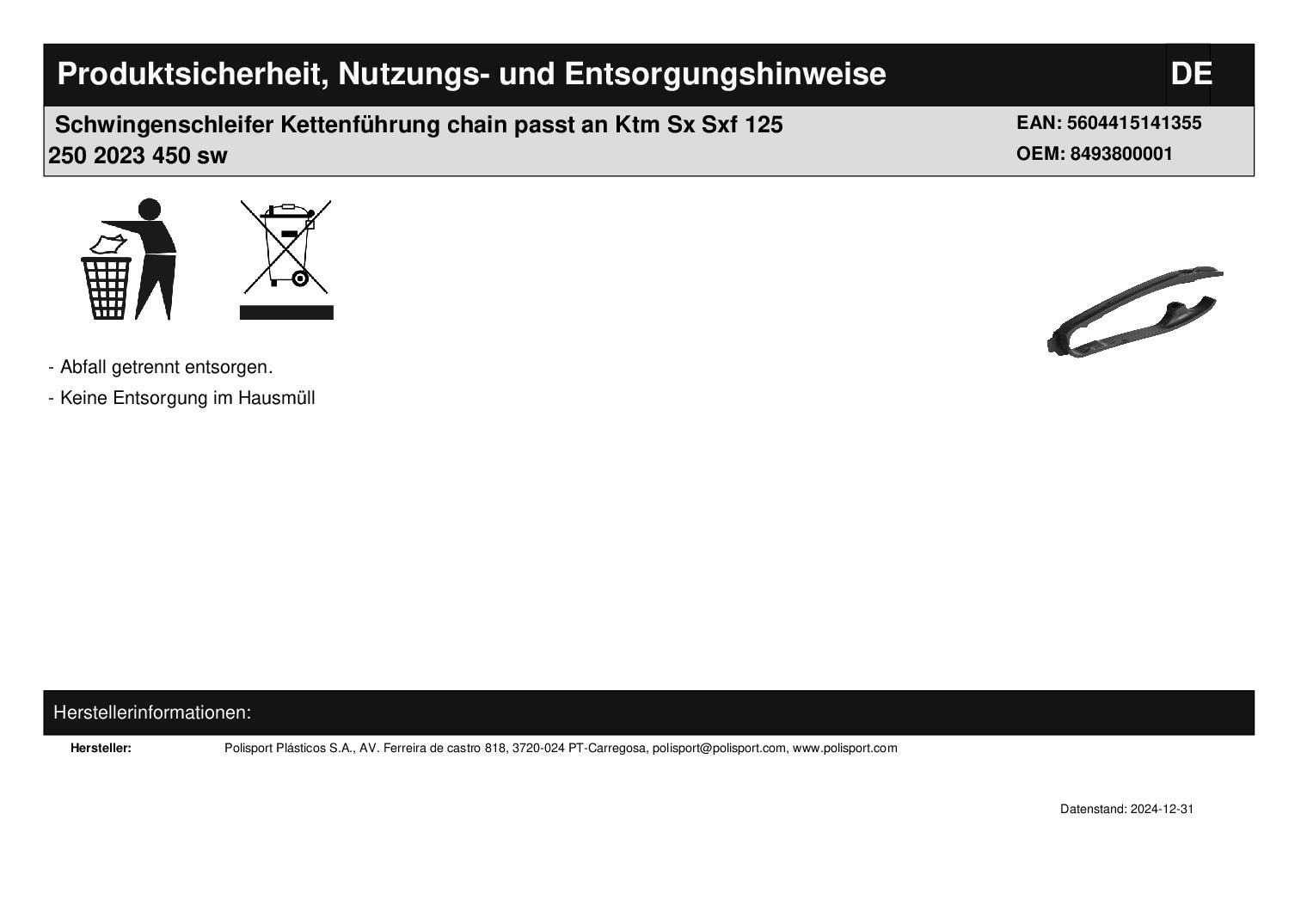 Titel: Schwingenschleifer Kettenführung chain guard passt an Suzuki Rmz 450 18-25 sw