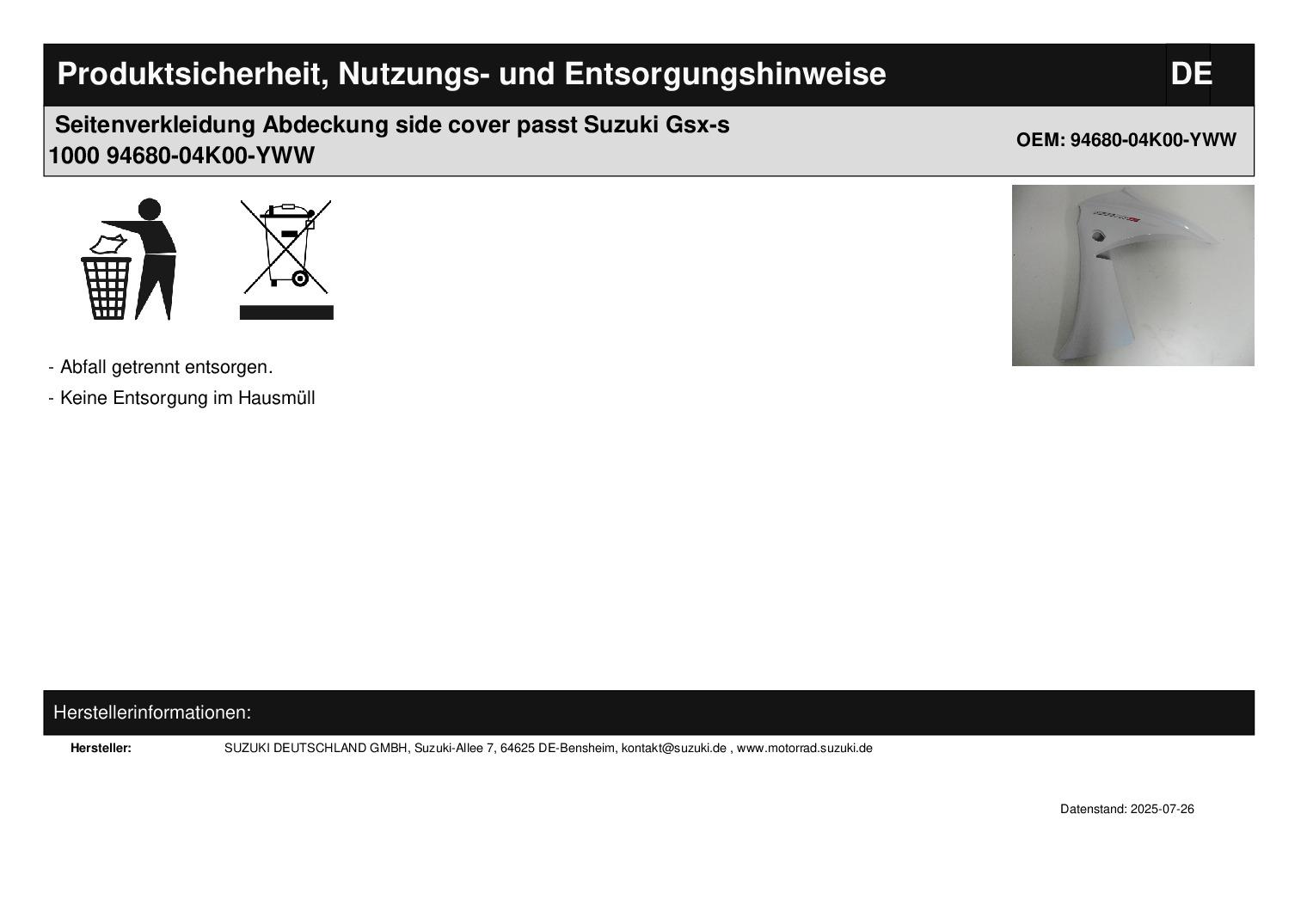 In dieser Auktion gibt es folgenden Artikel zu kaufen: Seitenverkleidung links (siehe Foto) Modell: passend für Suzuki GSX-S 1000 FA Bj.: 2016 - 2020 Lieferumfang: siehe Foto Artikelzustand: neu Bei Unklarheiten oder Fragen bitte erst E-Mail schreiben.