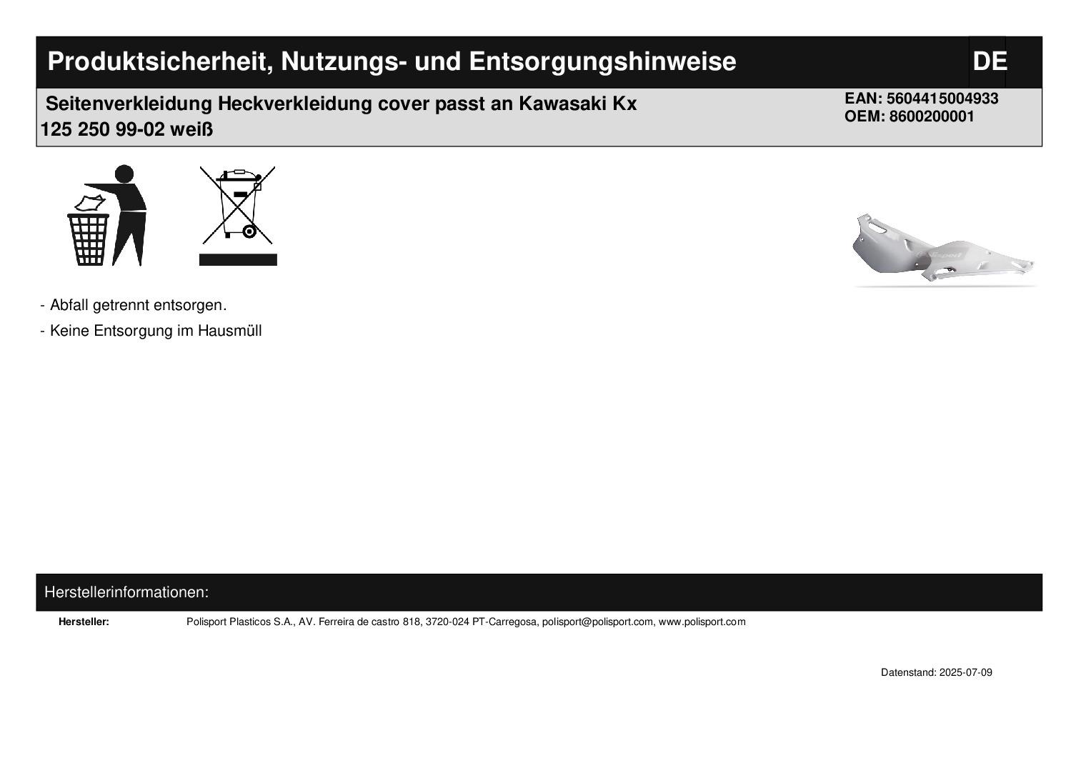 In dieser Auktion gibt es folgenden Artikel zu kaufen: Seitenverkleidung (siehe Foto) Fahrzeug: passend für Kawasaki Kx 125 250 Bj.: 1999 - 2002 (2-Takt) Lieferumfang: links + rechts Artikelzustand: neu Bei Unklarheiten oder Fragen bitte erst E-Mail schreiben.