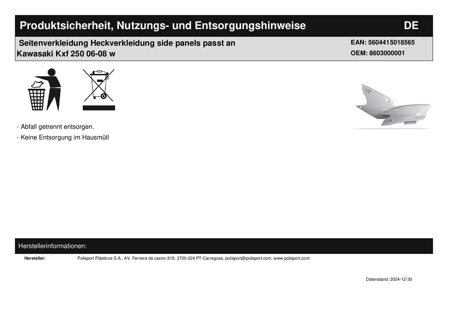 In dieser Auktion gibt es folgenden Artikel zu kaufen: Seitenverkleidung (siehe Foto) Fahrzeug: passend für Kawasaki Kx-f 250 Bj.: 2006 - 2008 (4-Takt) Lieferumfang: links + rechts Artikelzustand: neu Bei Unklarheiten oder Fragen bitte erst E-Mail schreiben.