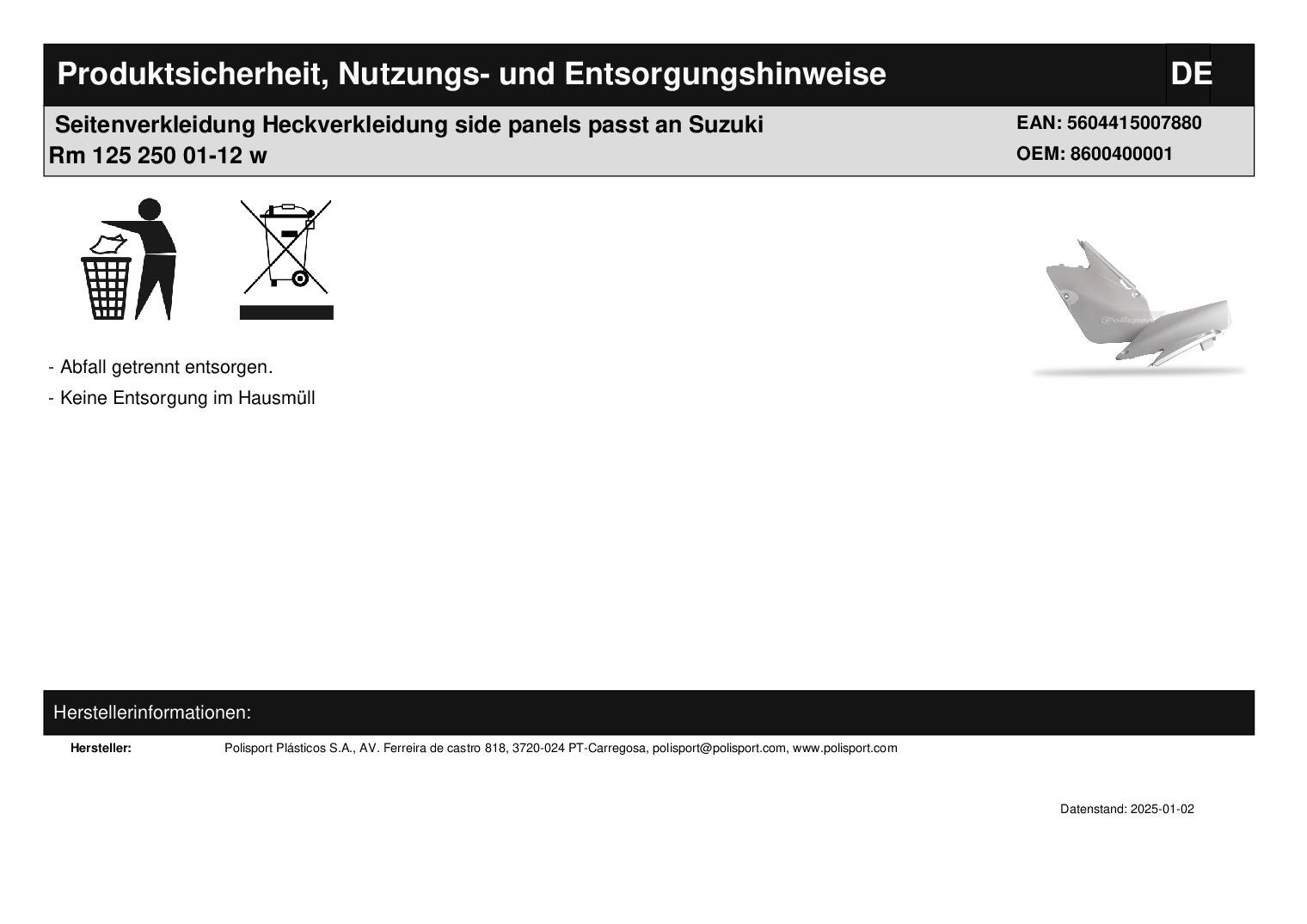 In dieser Auktion gibt es folgenden Artikel zu kaufen: Seitenverkleidung links + rechts (siehe Foto) Fahrzeug: passend für Suzuki RM 125, 250 (2-Takt) Bj.: 2001 - 2008 Lieferumfang: siehe Foto Artikelzustand: neu Bei Unklarheiten oder Fragen bitte erst E-Mail schreiben.