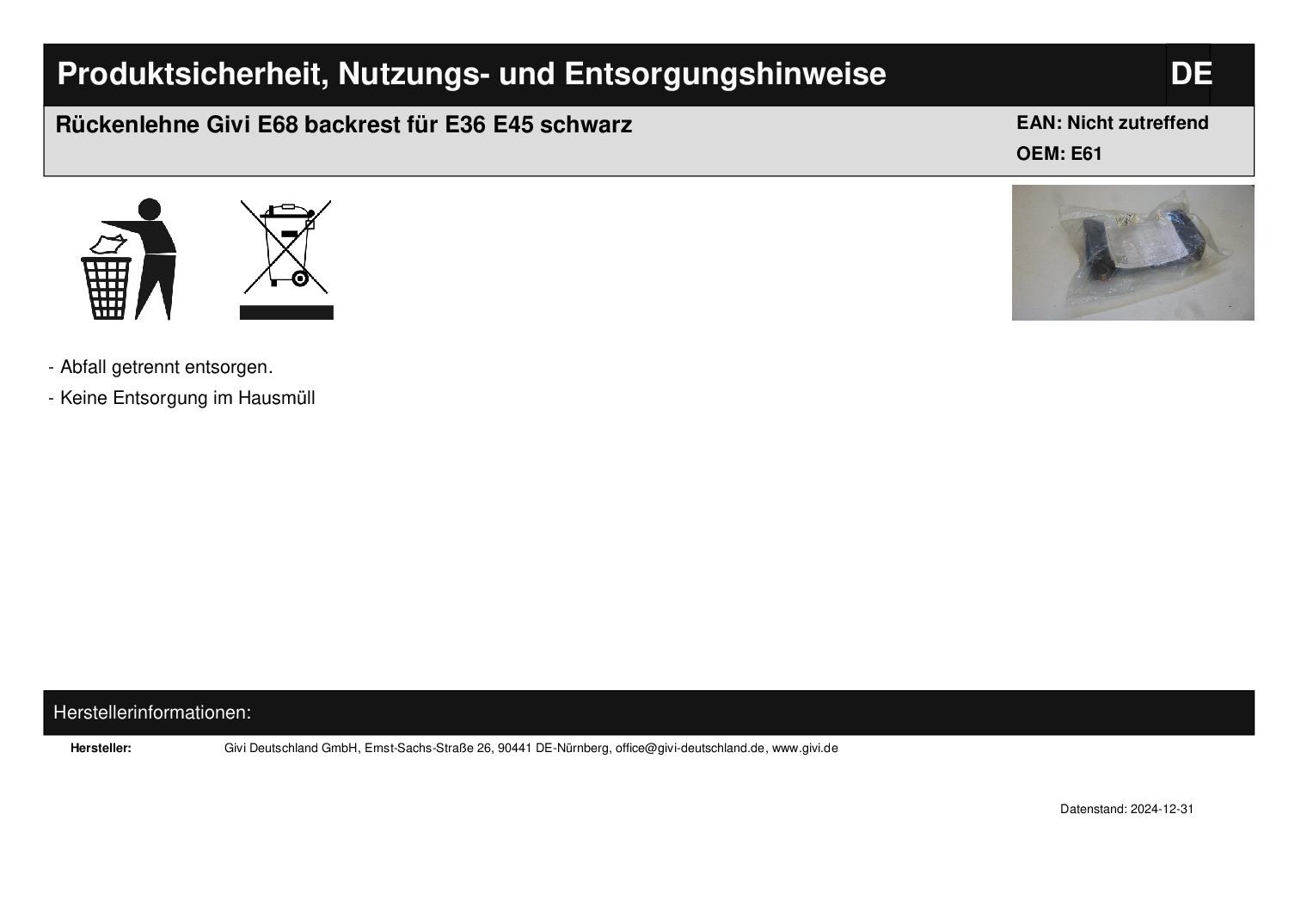 Modell: GIVI E68 Lieferumfang: siehe Foto Artikelzustand: neu aus Geschäftsauflösung, mit leichten Lagerspuren; Zustand siehe Foto Bei Unklarheiten oder Fragen bitte erst E-Mail schreiben.