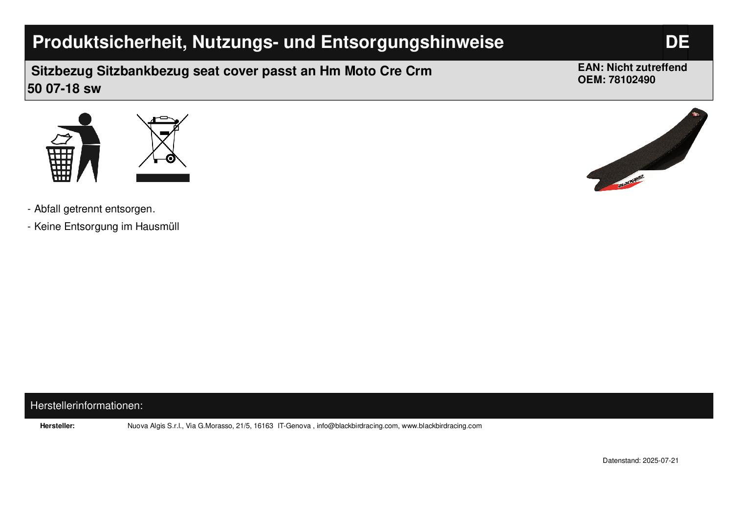 In dieser Auktion gibt es folgenden Artikel zu kaufen: Sitzbezug (siehe Foto) Modell: passend für HM Moto CRE 50 Bj.: 07 - 18 CRM 50 Bj.: 07 - 18 Lieferumfang: 1 Stück Artikelzustand: neu