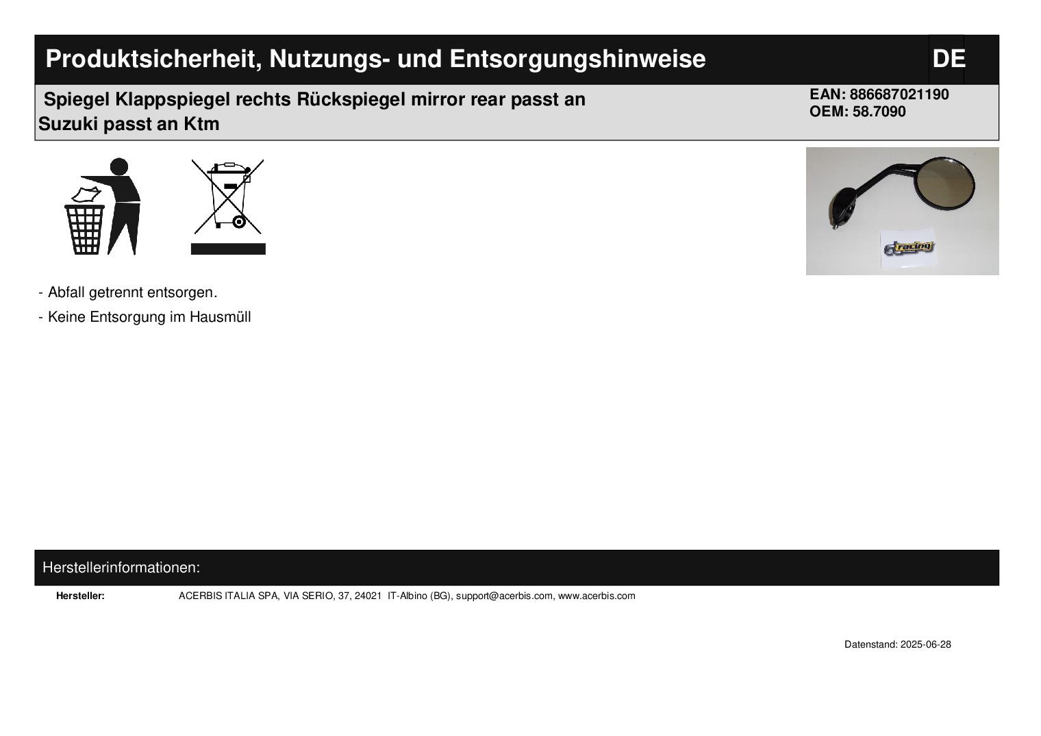 Spiegel Klappspiegel rechts Rückspiegel mirror rear passt an Suzuki passt an Ktm