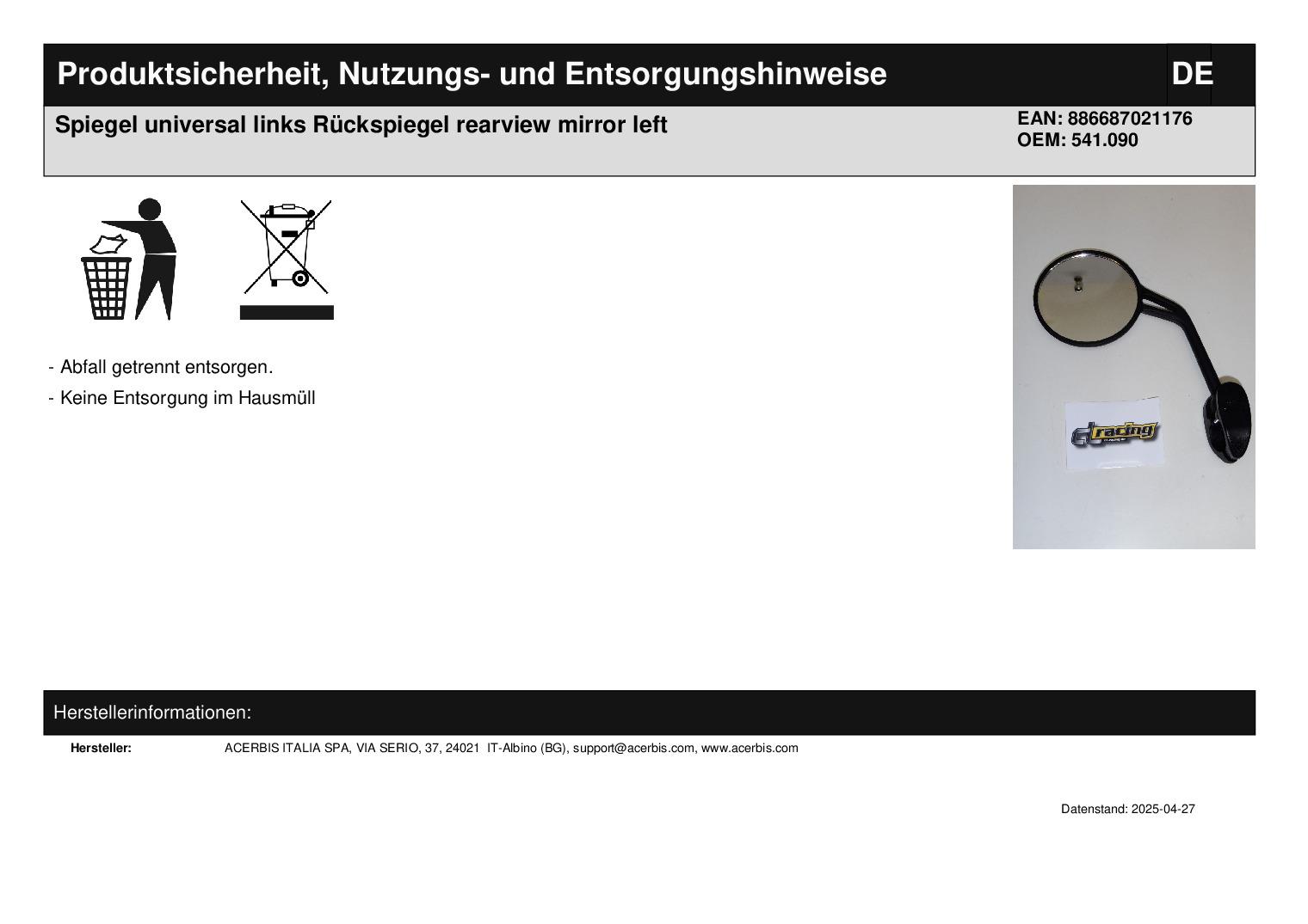 Acerbis Klappspiegel links - Lager -