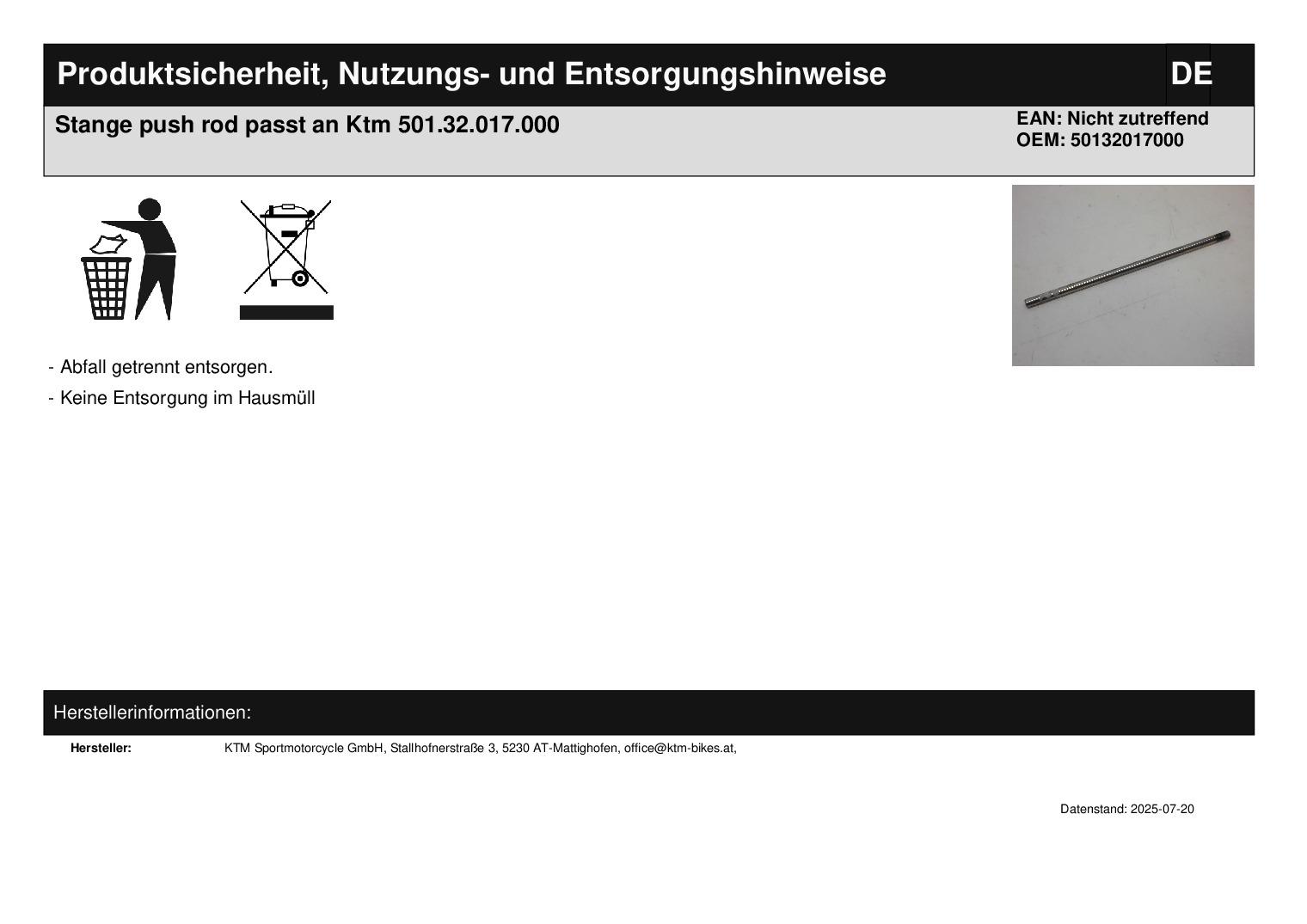 In dieser Auktion gibt es folgenden Artikel zu kaufen: Stange (siehe Foto) Modell: passend für KTM Bj.: unbekannt Lieferumfang: siehe Foto Artikelzustand: neu aus Geschäftsauflösung, mit minimalen Lagerspuren; Zustand siehe Foto Bei Unklarheiten oder Fragen bitte erst E-Mail schreiben.