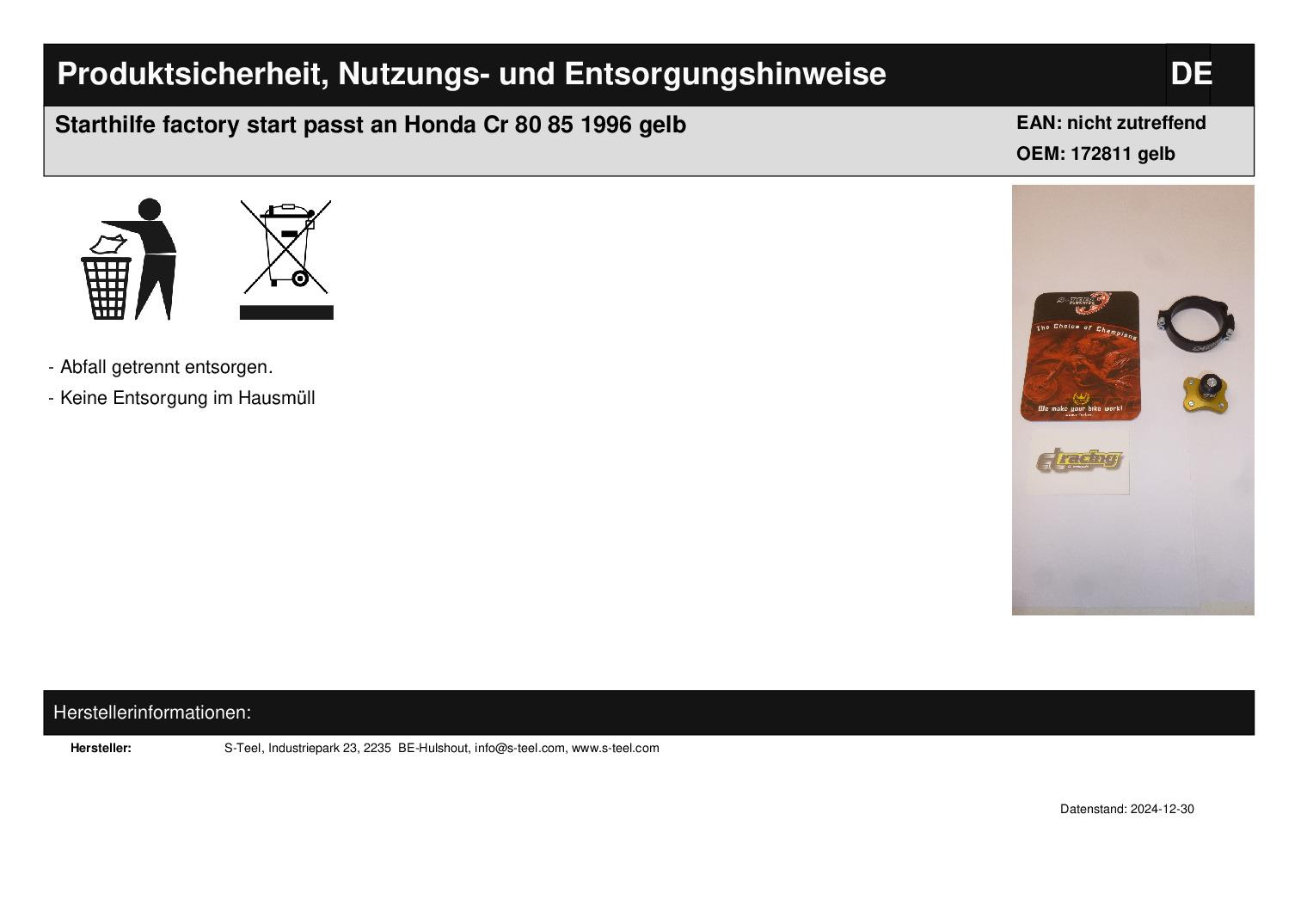 In dieser Auktion gibt es folgenden Artikel zu kaufen: Starthilfe (siehe Foto) Modell: passend für Honda CR 80 Bj.: 1996 CR 85 Bj.: 1996 Lieferumfang: siehe Foto Artikelzustand: neu