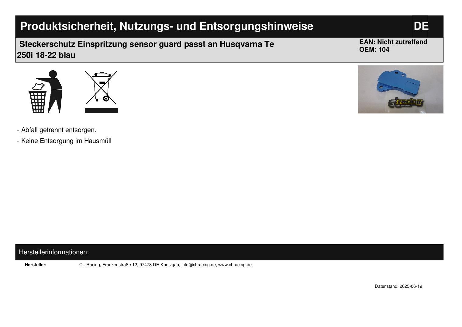 Titel: Steckerschutz Einspritzung sensor guard passt an Husqvarna Te 250i 18-23 blau