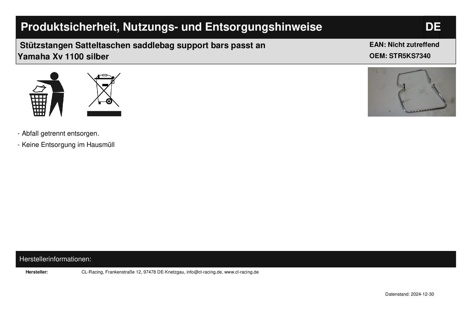 In dieser Auktion gibt es folgenden Artikel zu kaufen: Satteltaschen Stützstangen (siehe Foto) Modell: passend für Yamaha XV 1100 Bj.: unbekannt Lieferumfang: siehe Foto Artikelzustand: neu aus Geschäftsauflösung, mit leichten Lagerspuren; Zustand siehe Foto Bei Unklarheiten oder Fragen bitte erst E-Mail schreiben.