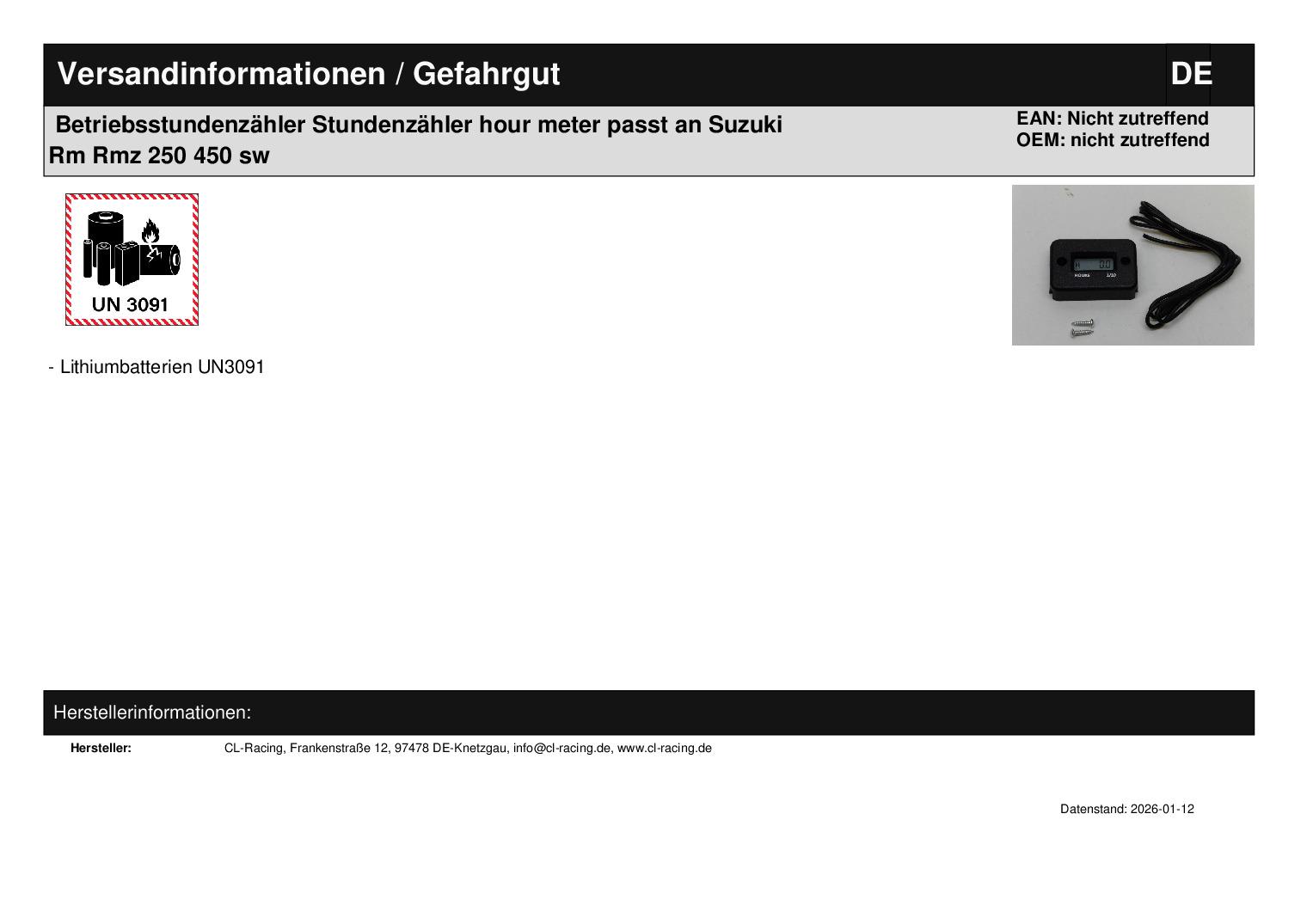Betriebsstundenzähler Stundenzähler hour meter passt an Suzuki Rm Rmz 250 450 sw