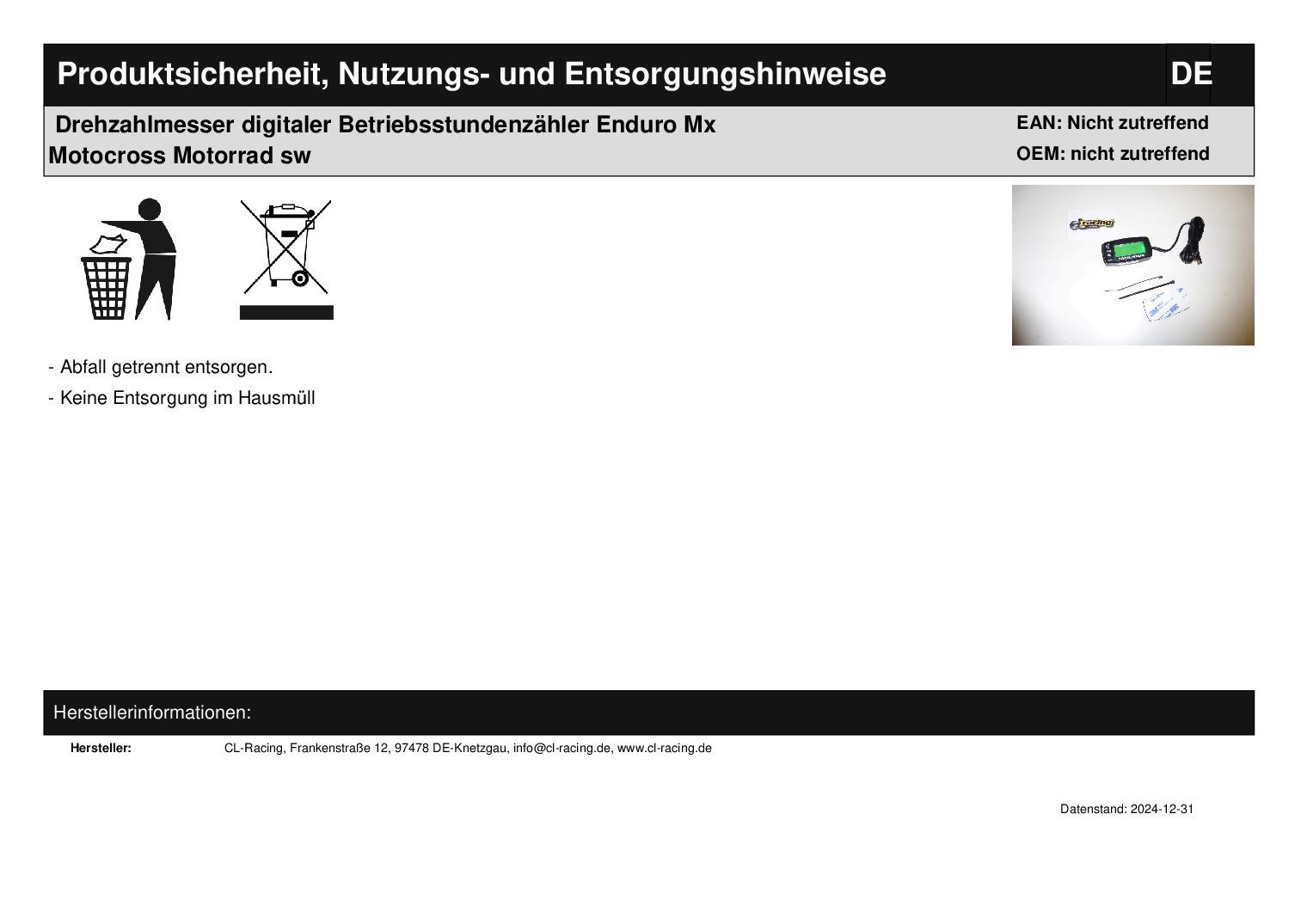Titel: Drehzahlmesser digitaler Betriebsstundenzähler Enduro Mx Motocross Motorrad sw