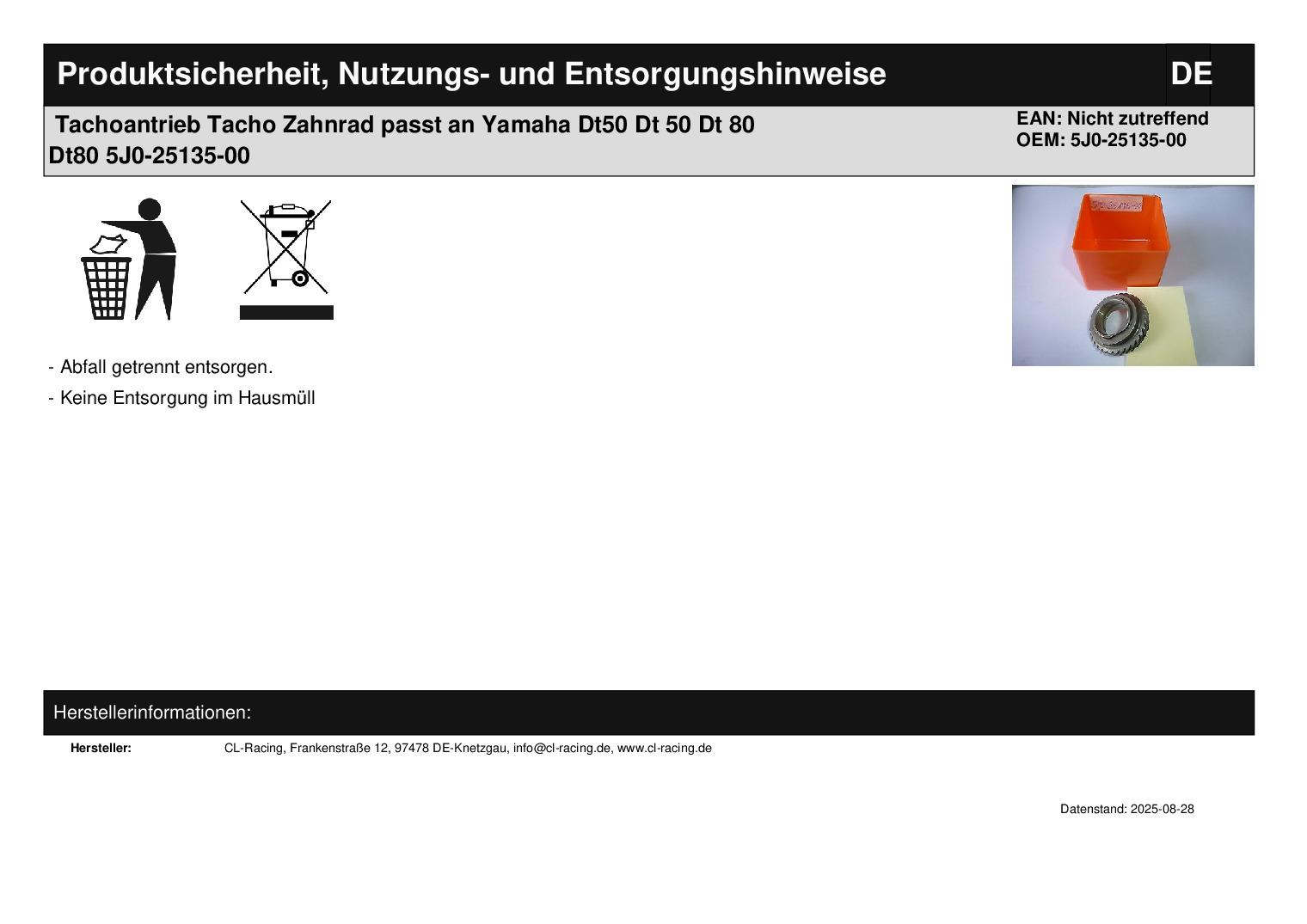 In dieser Auktion gibt es folgenden Artikel zu kaufen: originales Zahnrad für Tachometerantrieb (siehe Foto) Modell: passend für Yamaha DT 80 MX DT50 Bj.: unbekannt MTyp: 1J4 - 2FN - 1RE - 29H - 29J - 36N Lieferumfang: 1 Stück Artikelbeschreibung: neu aus Geschäftsauflösung, mit leichten Lagerspuren; Zustand siehe Foto
