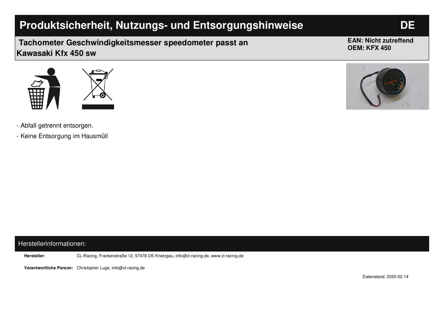 In dieser Auktion gibt es folgenden Artikel zu kaufen: Tachometer (siehe Foto) Modell: passend für Kawasaki KFX 450 Bj.: unbekannt Lieferumfang: siehe Foto Artikelzustand: normale Gebrauchsspuren vorhanden; Zustand siehe Foto Bei Unklarheiten oder Fragen bitte erst E-Mail schreiben.