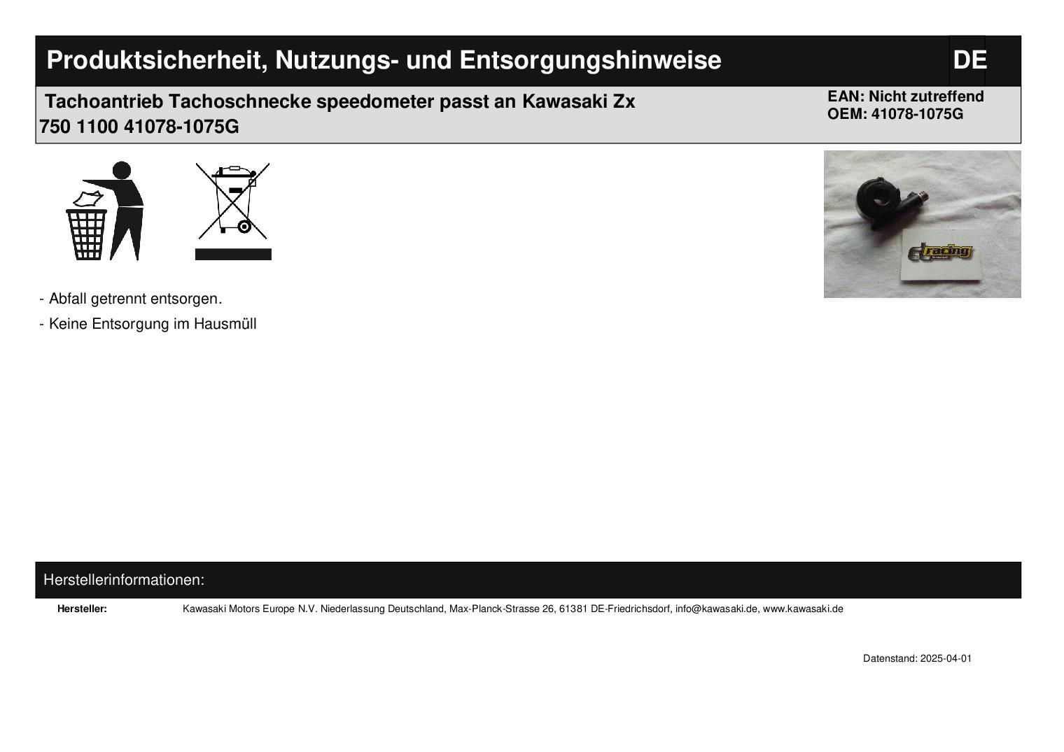 In dieser Auktion gibt es folgenden Artikel zu kaufen: Tachoantrieb (siehe Foto) Modell: passend für Kawasaki ZX 750 Bj.: 89 - 90 ZX 1100 Bj.: 90 - 92 Lieferumfang: siehe Foto Artikelzustand: neu aus Geschäftsauflösung, mit leichten Lagerspuren; Zustand siehe Foto