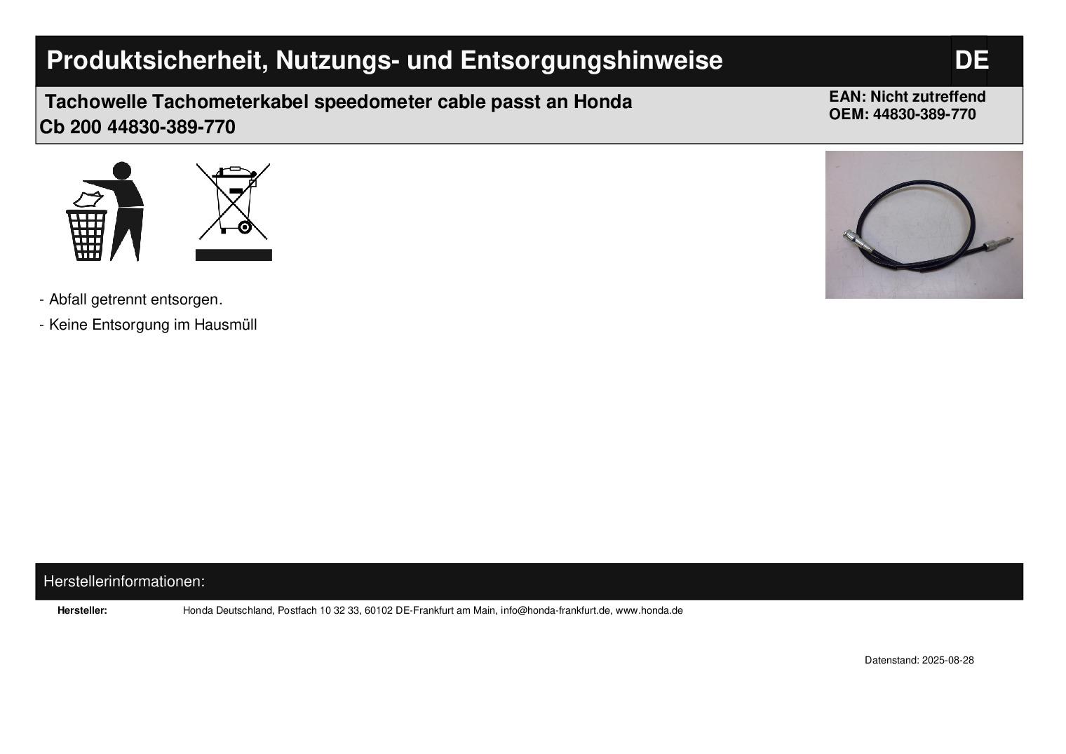 In dieser Auktion gibt es folgenden Artikel zu kaufen: Tachowelle (siehe Foto) Modell: passend für Honda CB 200 T A Bj.: 76 Lieferumfang: siehe Foto Artikelzustand: neu aus Geschäftsauflösung, mit leichten Lagerspuren; Zustand siehe Foto Bei Unklarheiten oder Fragen bitte erst E-Mail schreiben.