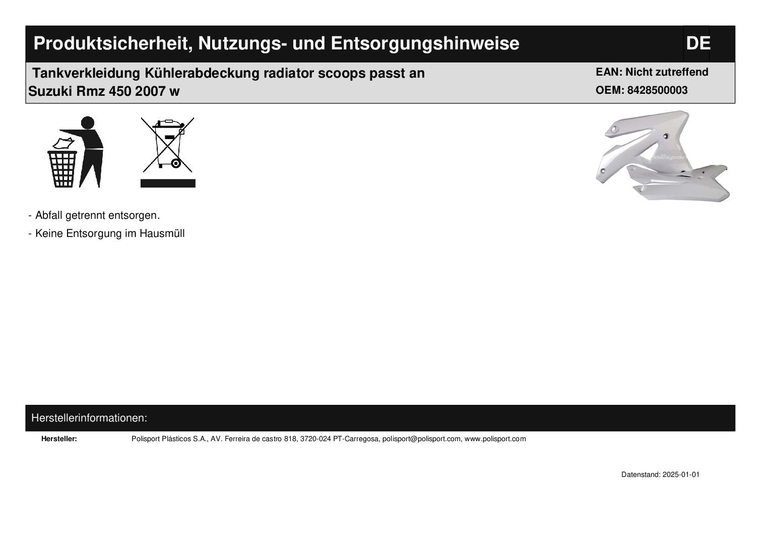 In dieser Auktion gibt es folgenden Artikel zu kaufen: Tankverkleidung (siehe Foto) Fahrzeug: passend für Suzuki RMZ 450 Bj.: 2007 Lieferumfang: siehe Foto Artikelzustand: neu aus Geschäftsauflösung, mit minimalen Lagerspuren; Zustand siehe Foto Bei Unklarheiten oder Fragen bitte erst E-Mail schreiben.