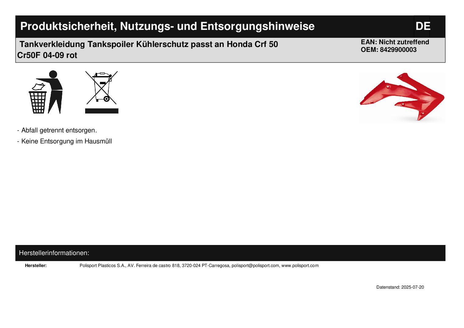 In dieser Auktion gibt es folgenden Artikel zu kaufen: Tankverkleidung links + rechts (siehe Foto) Fahrzeug: passend für Honda CRF 50 (4-Takt) Bj.: 04 - 09 Lieferumfang: links + rechts Artikelzustand: neu aus Geschäftsauflösung, mit minimalen Lagerspuren; Zustand siehe Foto Bei Unklarheiten oder Fragen bitte erst E-Mail schreiben.